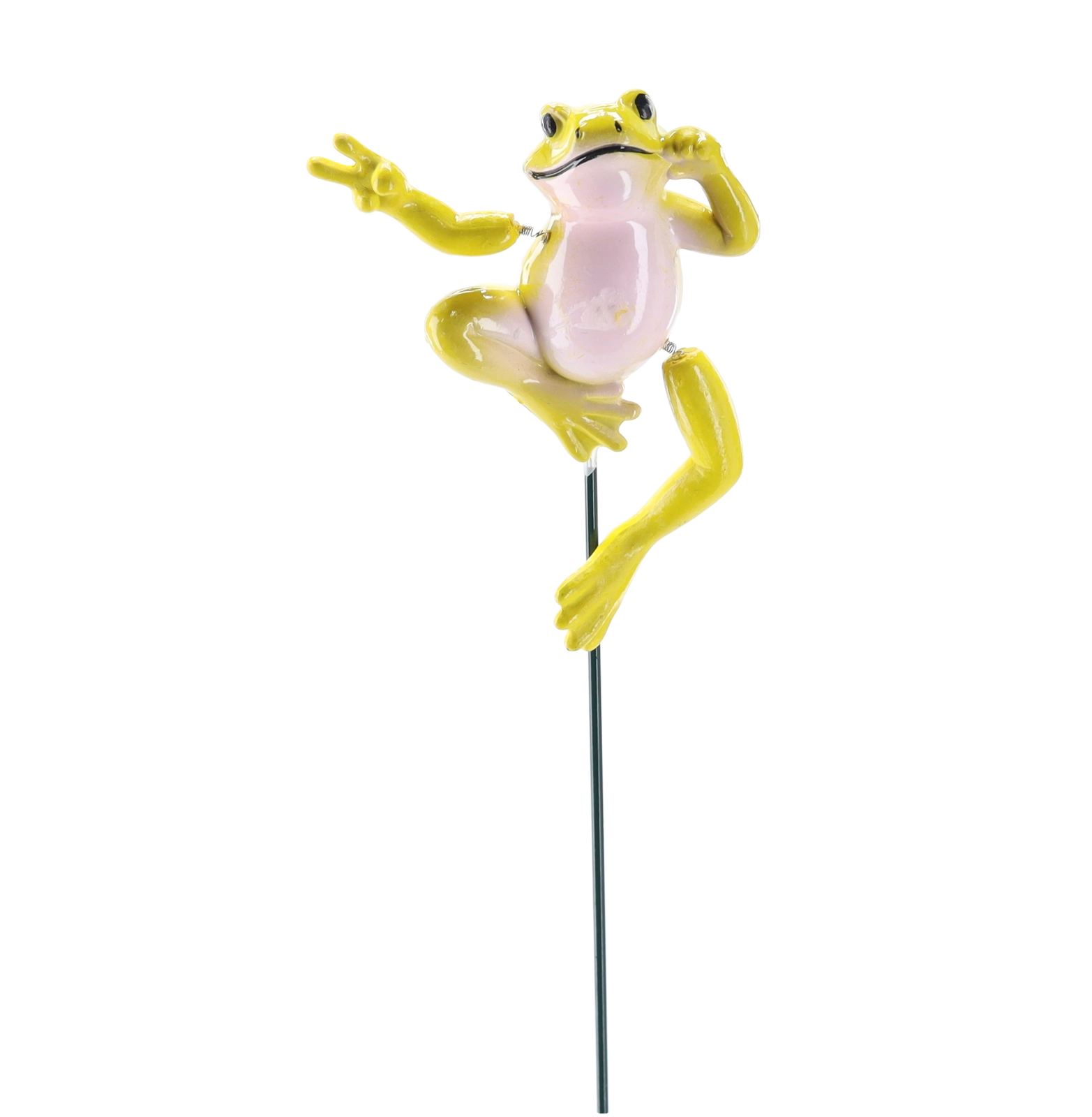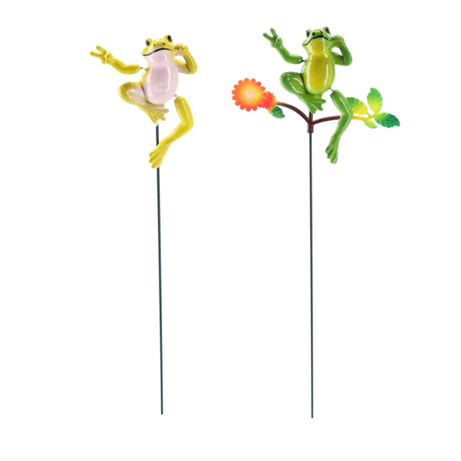 Stylová zahradní žába na kovové tyčce přidá vašemu prostoru špetku hravosti a barev. Díky lesklému povrchu a detailům, jako jsou lístky a květ, vynikne v trávníku, květinových záhonech i velkých květináčích. Dlouhá tyčka zajišťuje dobrou stabilitu a viditelnost dekorace.