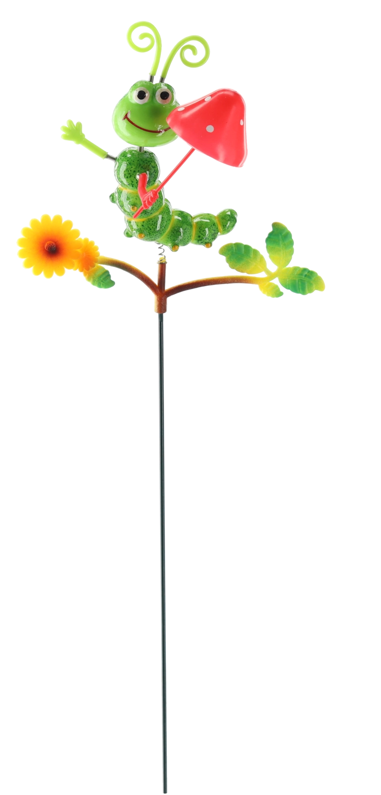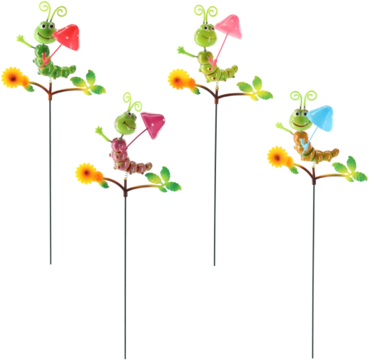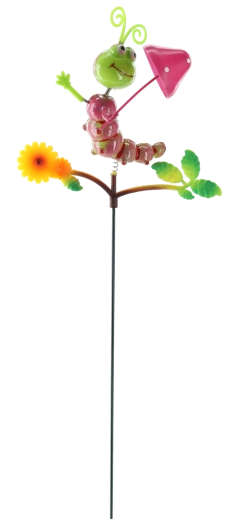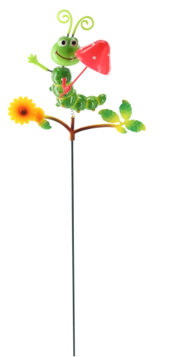 Roztomilá zahradní dekorace ve tvaru housenky na kovové tyči dodá každému záhonu i květináči hravý šmrnc. Barevně malovaný kov, čtyři varianty provedení a odolné venkovní zpracování zajistí dlouhou radost. Snadné zapíchnutí do půdy díky dlouhé tyči a dekorativní detaily jako květ a listy dělají z této ozdoby poutavý akcent vaší zahrady.