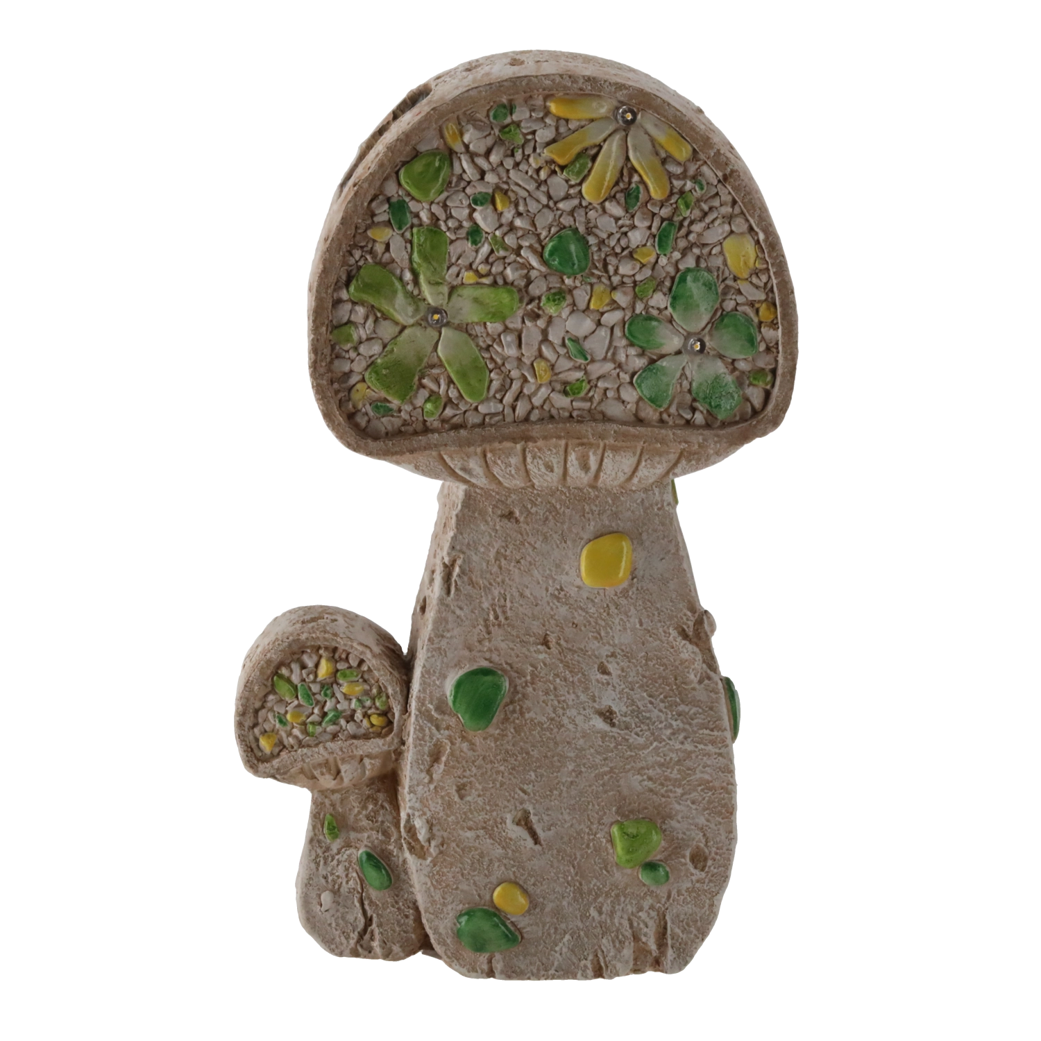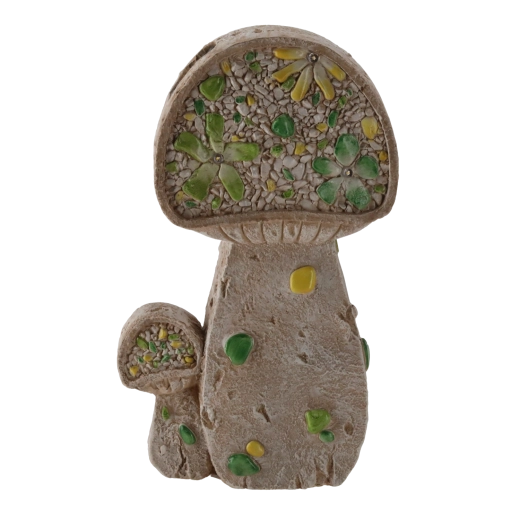 Realistický tvar plochých hub vynikne u záhonů, zahradních cestiček i na terase, a dodá prostoru přírodní šarm.