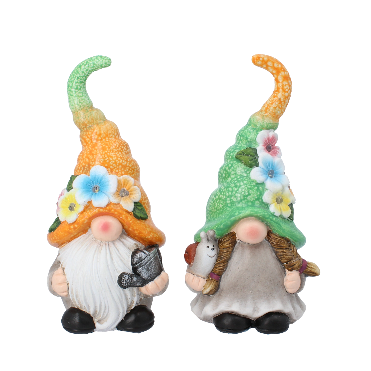 Figurky jsou vyrobené z materiálu odolného vůči povětrnostním vlivům, takže bez obav zvládnou sezónní proměny počasí. Kompaktní velikost umožňuje snadné umístění téměř kamkoli – od truhlíků až po zahradní dekorace na stole či polici v pergole.