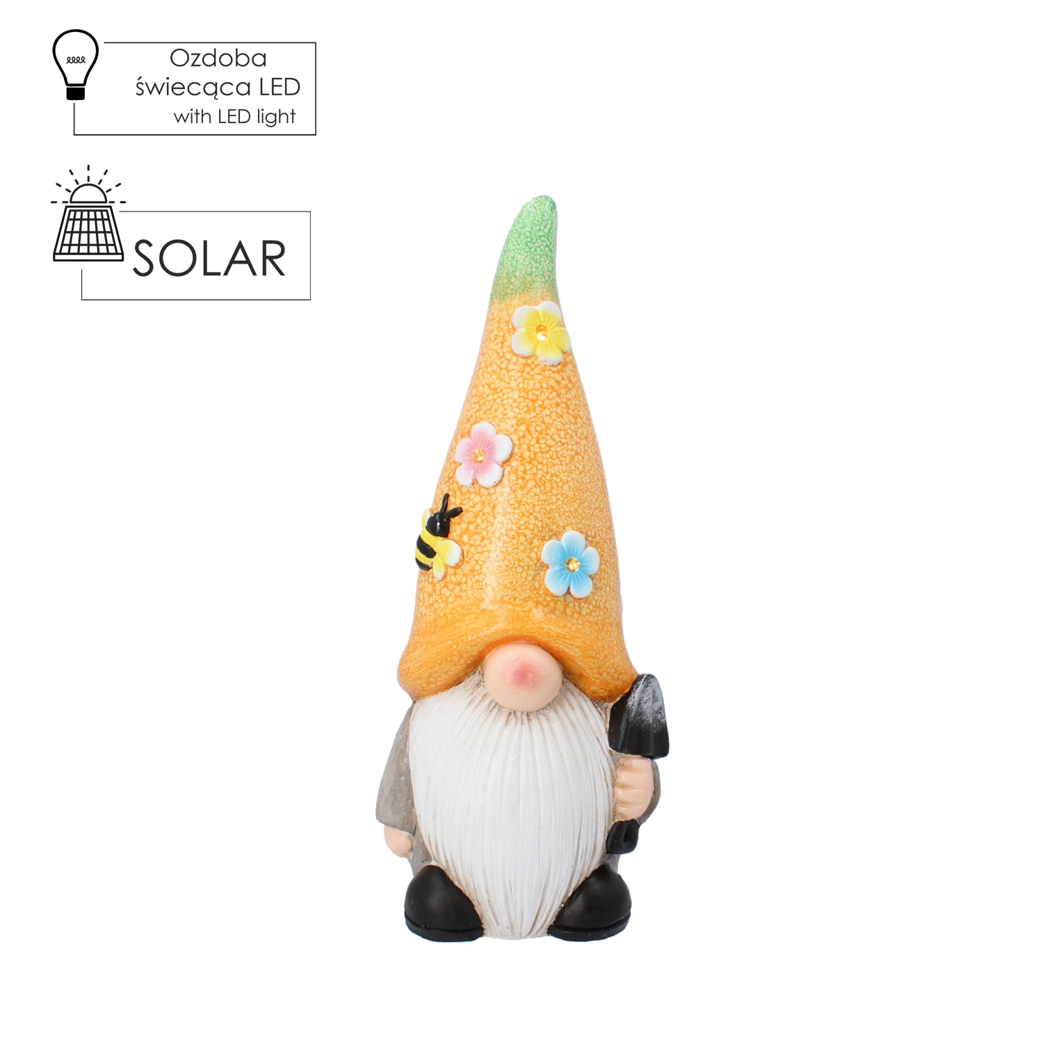 Tento stylový zahradní skřítek je navržen jako všestranná venkovní dekorace, která přináší radost po celý rok. Integrované LED osvětlení dodává figurce kouzelný efekt během večerních hodin, a tím podtrhuje útulnou atmosféru vašeho venkovního prostoru.