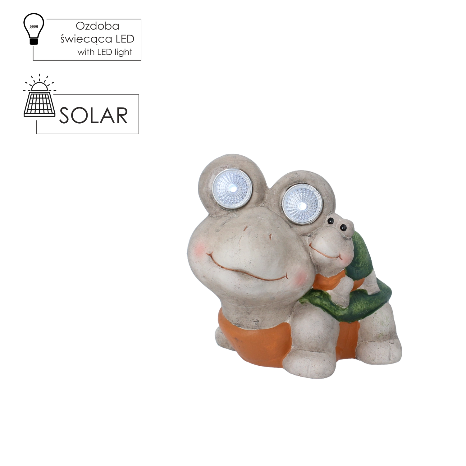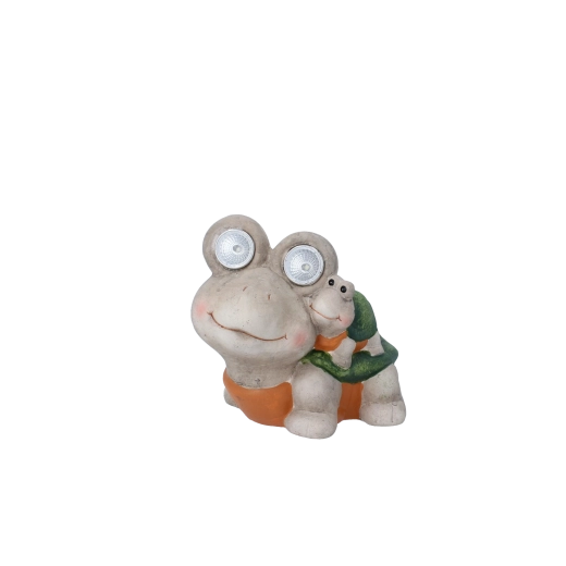 Stylová figurka želvy se svítícíma očima (LED) přináší do vašeho domova či zahrady milý akcent a jemné přisvětlení. Větší želva má integrované LED v očích, menší želvička na jejím krunýři je dekorativní bez osvětlení. Přirozené barevné tónování a detailní zpracování se skvěle hodí k rostlinám, na okenní parapet, terasu i balkon.