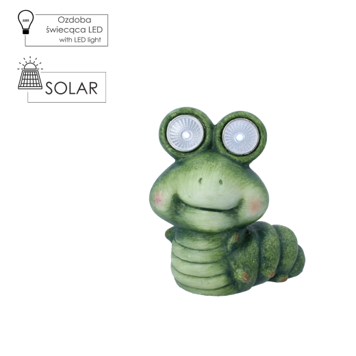 Tato dekorativní zahradní housenka oživí každý venkovní prostor jemným světelným efektem z očí s LED diodami. Je ideální jako stylový akcent na okno, schody, záhon, parapet nebo stolík na terase. Díky pevné konstrukci a odolnému materiálu se hodí pro celoroční vystavení.