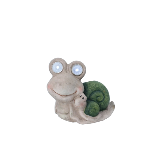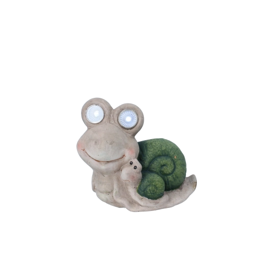 Tato hravá figurka šneka s integrovanými LED očima vnese do vaší zahrady či na balkon příjemnou atmosféru a večer se promění v nenápadné dekorativní světýlko. Jemné textury ulity, usměvavý výraz a malý šneček na boku dodávají dekoraci jedinečný šarm.