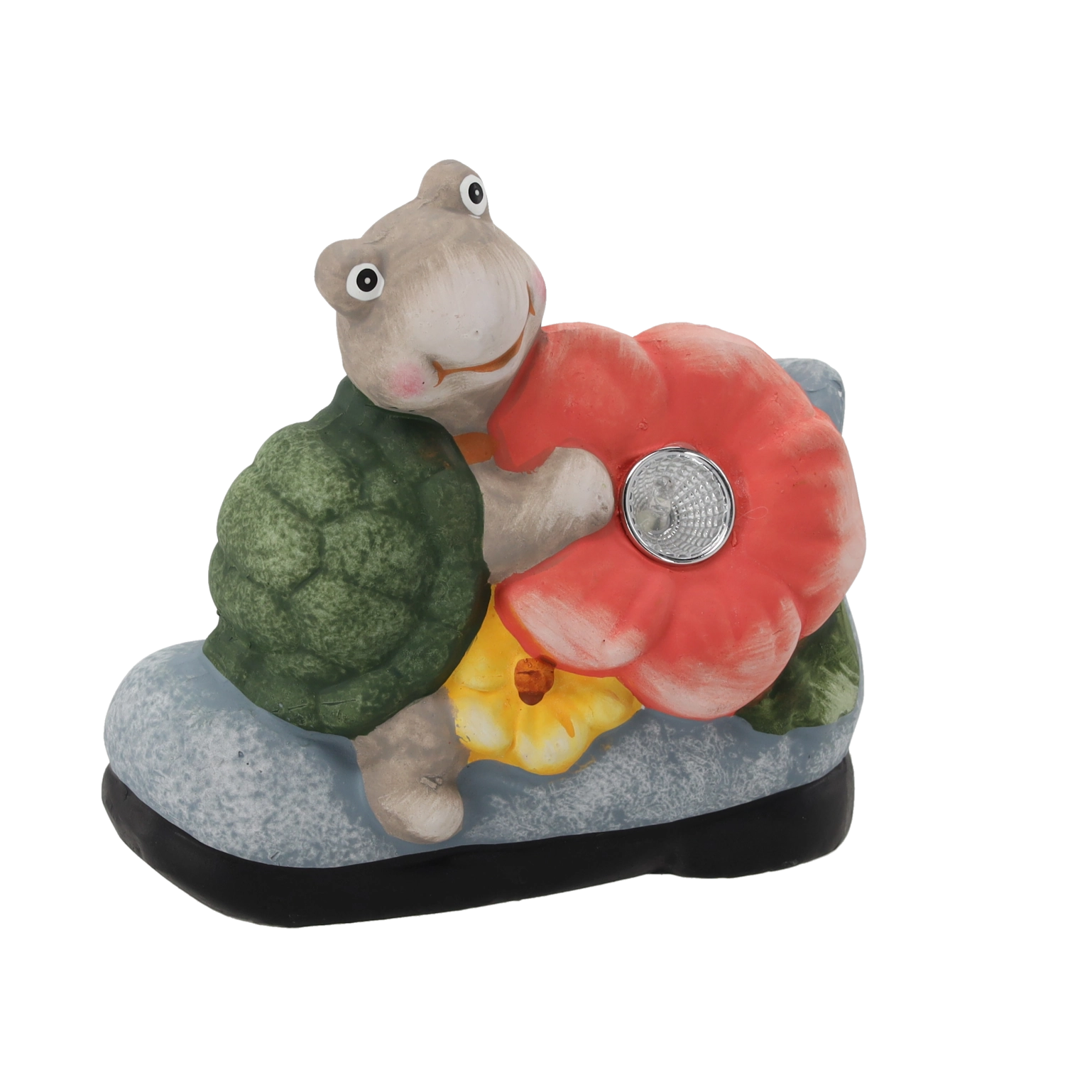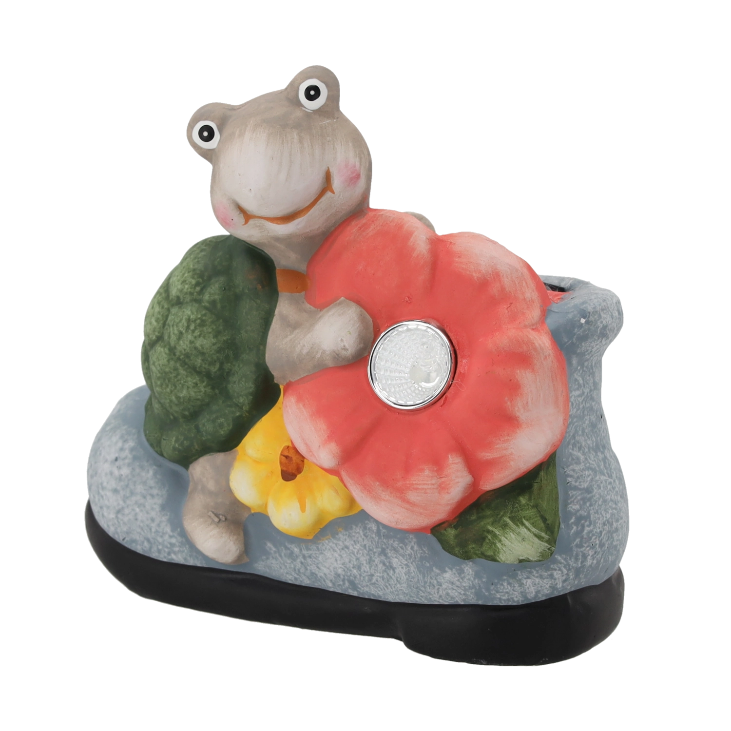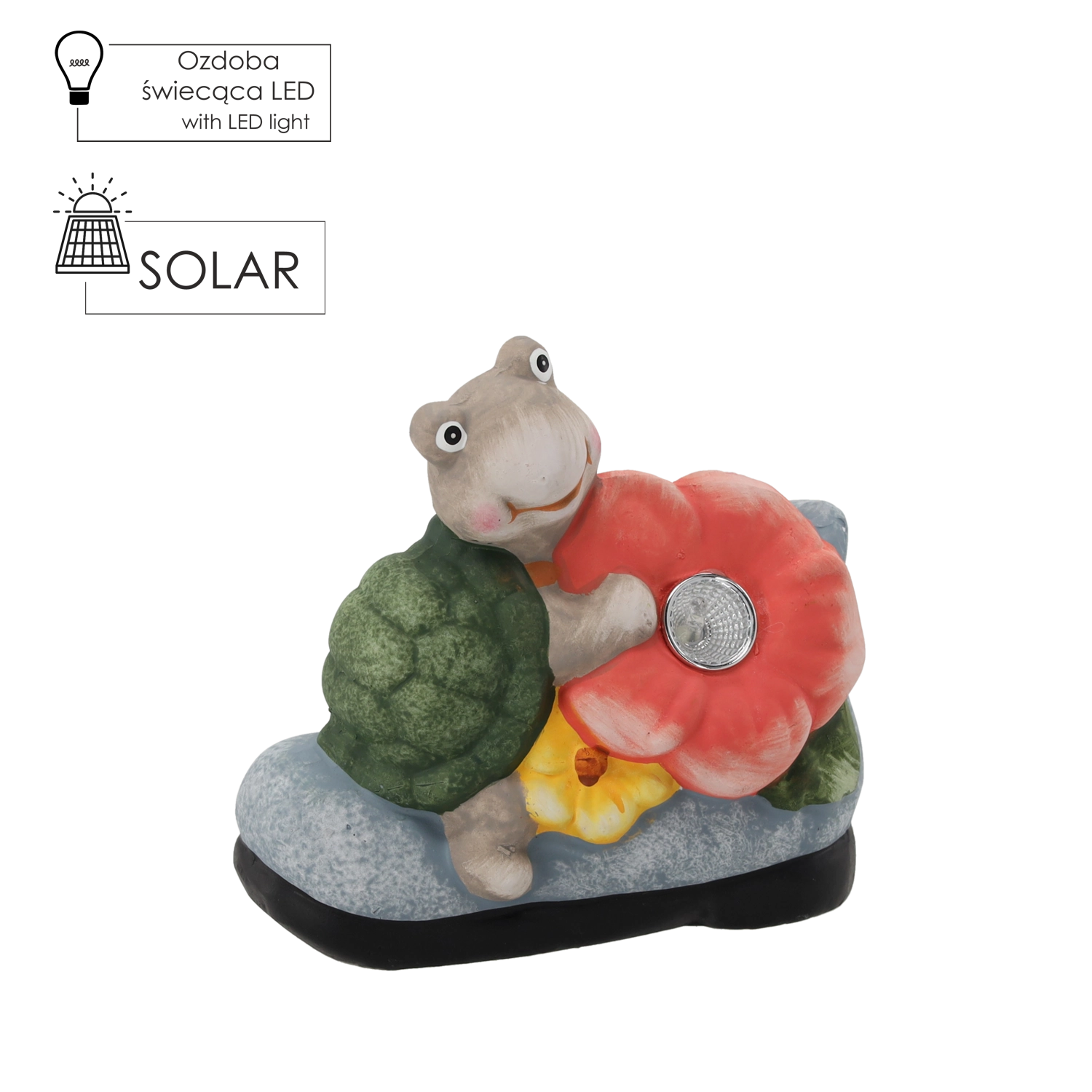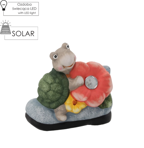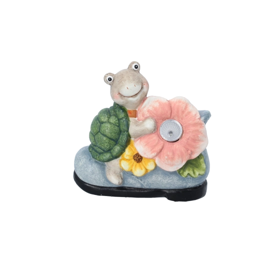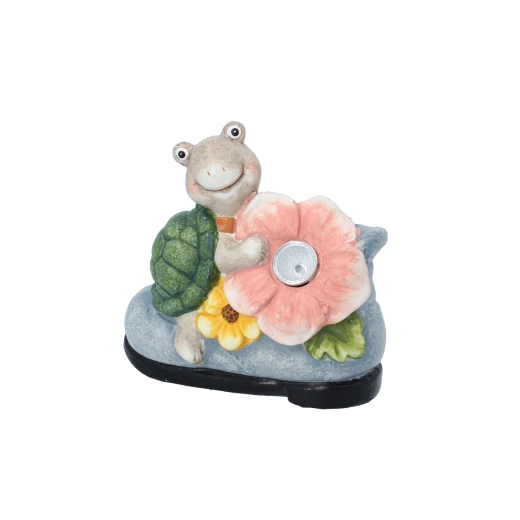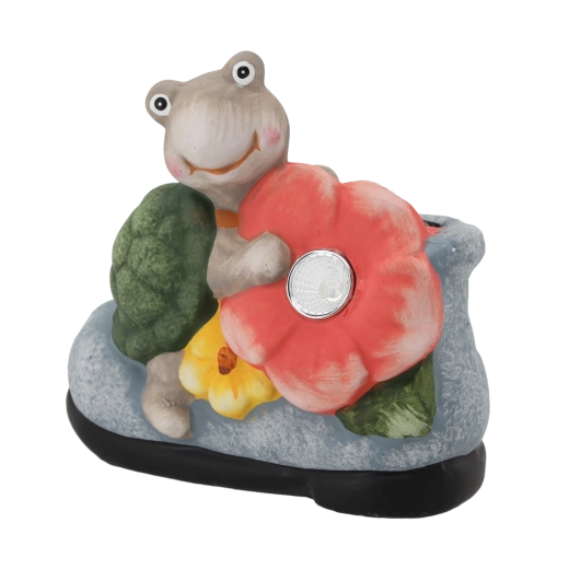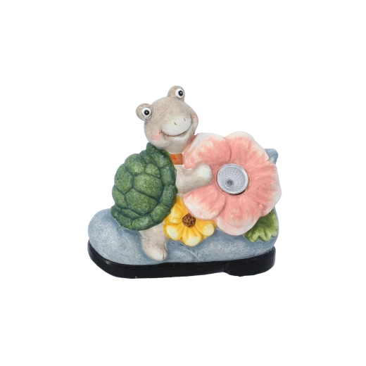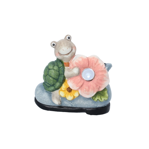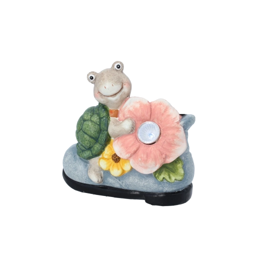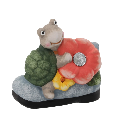 Tato roztomilá želvička s květinou potěší detailním provedením a jemným barevným laděním. Integrované LED světlo zvýrazňuje texturu krunýře i okvětních lístků a po setmění vykouzlí útulné světelné tečky na zahradě, balkoně i okenním parapetu. Díky kompaktním rozměrům ji snadno zakomponujete do truhlíků, ke vstupu do domu nebo na zahradní stolek.