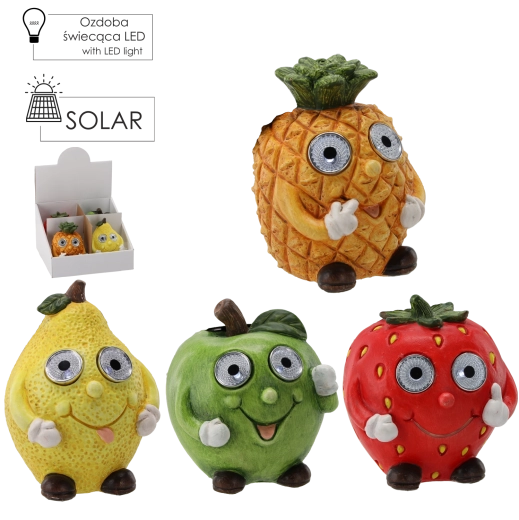 Figurky jsou vyrobeny z odolné polyresinové pryskyřice, která je stabilní, barevně stálá a připravená na proměnlivé počasí. Skvěle se hodí na zahradu, pergolu, terasu i okenní parapet. Mix veselých ovocných motivů oživí každý koutek.