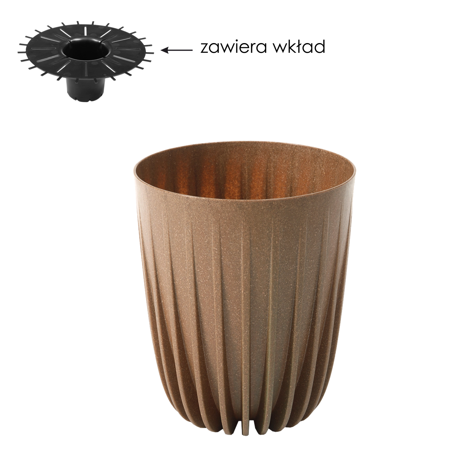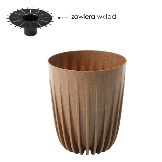 Praktická vnitřní vložka s otvory usnadňuje odtok přebytečné vody a pomáhá předcházet přemokření. Odolný plast s příměsí dřeva je lehký, trvanlivý a odolný vůči povětrnostním vlivům i mechanickému opotřebení, takže květináč můžete bez obav používat doma, na balkoně i terase.