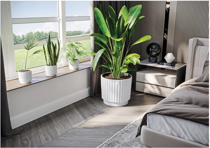 Udržitelný květináč MIKA Cyli Petit ECO spojuje moderní vzhled a odpovědný přístup. Vyroben z recyklovaného plastu, který je lehký, odolný a snadno se čistí. Matná bílá povrchová úprava se skvěle hodí do různých interiérů i exteriérů – od obýváku přes balkon až po terasu.