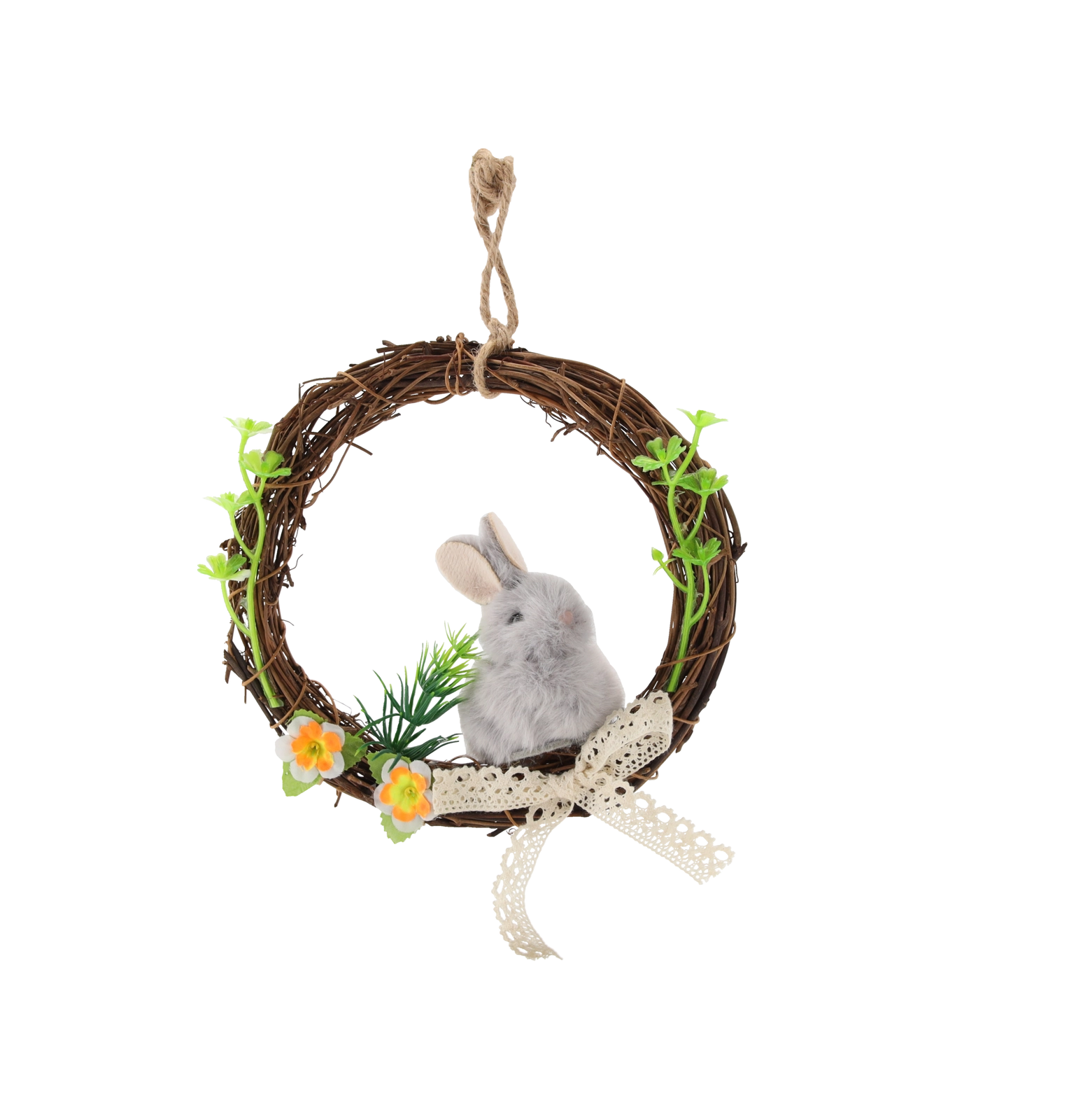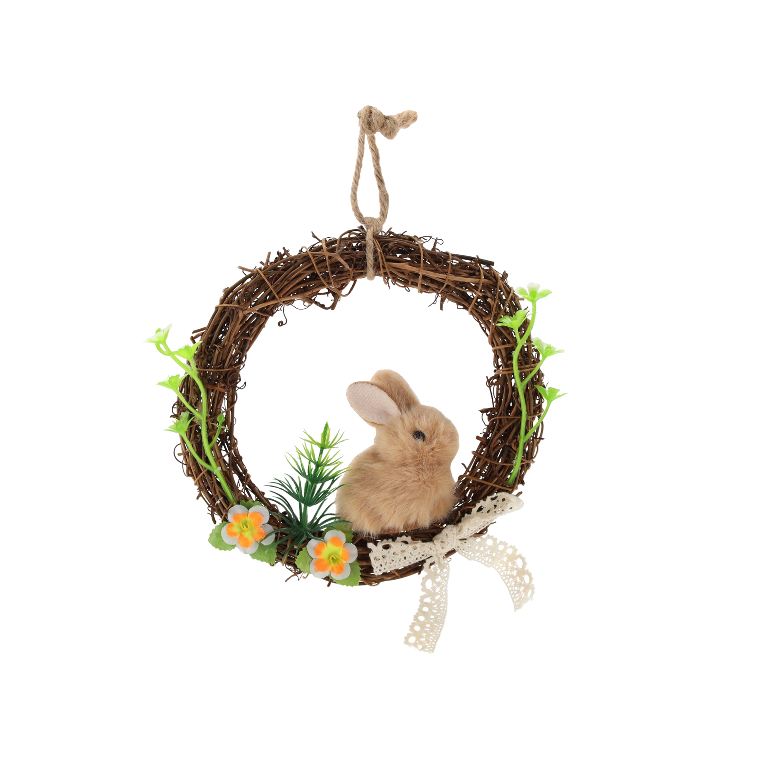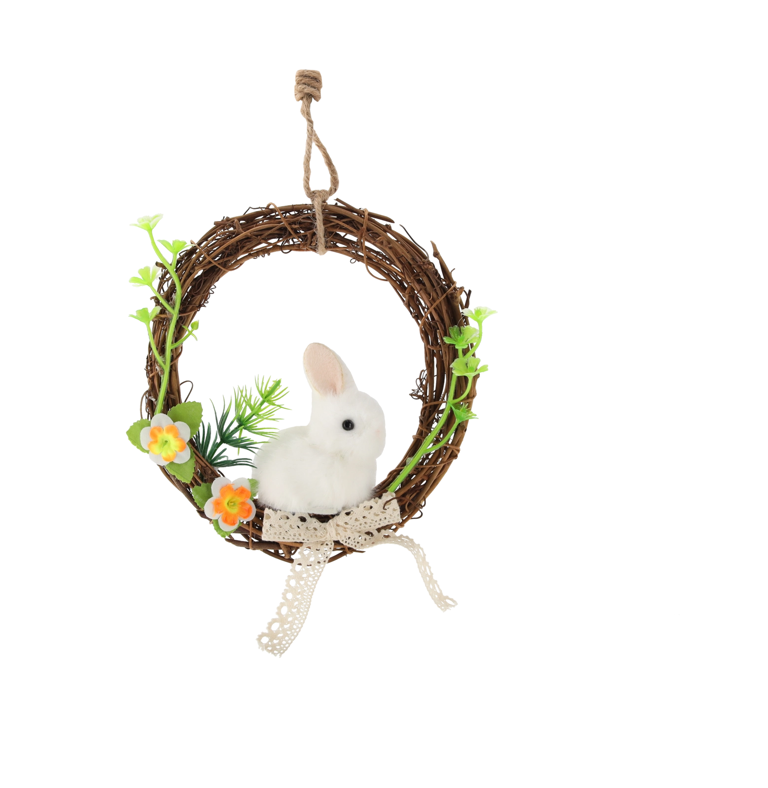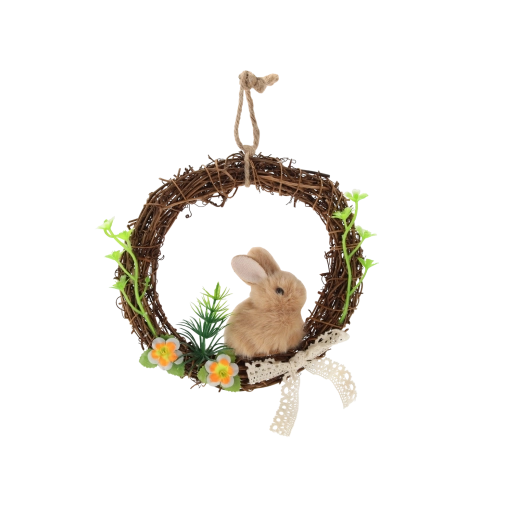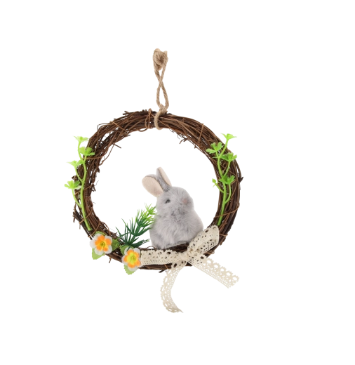 Hebký plyšový zajíček dodává věnci hravost a dělá z něj ideální velikonoční akcent do předsíně či obýváku.