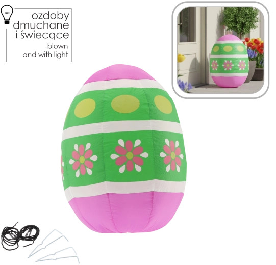 Tato stylová velikonoční dekorace se po zapnutí sama nafoukne a pomocí bílé LED vytvoří příjemné světlo pro sváteční atmosféru. Díky krytí IP44 je vhodná pro použití jak v interiéru, tak v chráněném exteriéru.