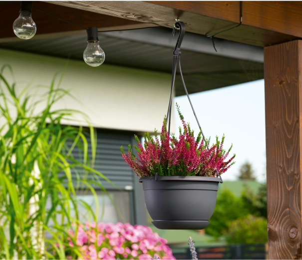 Elegantní závěsný květináč Malta 19 cm v antracitové barvě je stylovým řešením pro balkon, terasu i interiér. Nabízí moderní design, praktické háčky pro zavěšení a odnímatelnou misku pro snadnou údržbu. Je lehké manipulace, odolný vůči mrazu a UV záření a díky odvodním otvorům zajistí zdravý růst rostlin.