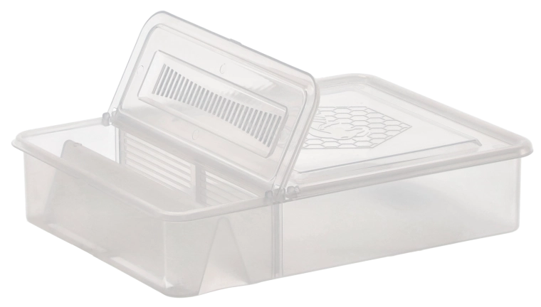 Praktická povalová krmítka z odolného průhledného plastu s objemem 1,5 l. Nabízí dvě samostatné komory s výklopnými víčky pro snadné doplňování, rychlou kontrolu hladiny a snadné čištění. Vhodná pro většinu úlů – lze ji umístit na povalu nebo přímo na rámky.