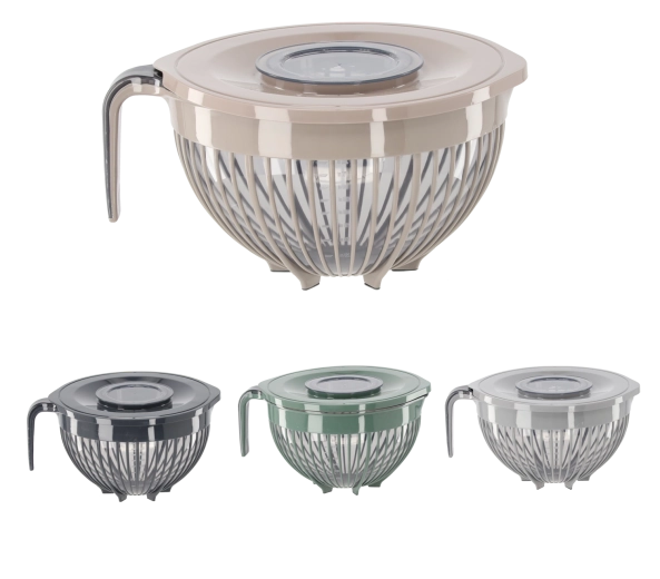 Kuchyňská miska LINEA 3 l je spolehlivý pomocník pro přípravu salátů, těsta i krémů. Díky kvalitnímu plastu s dlouhou životností odolá každodennímu používání a díky ergonomické rukojeti se pohodlně drží i při intenzivním míchání. Protiskluzová základna zajišťuje jistotu a stabilitu na pracovní desce.