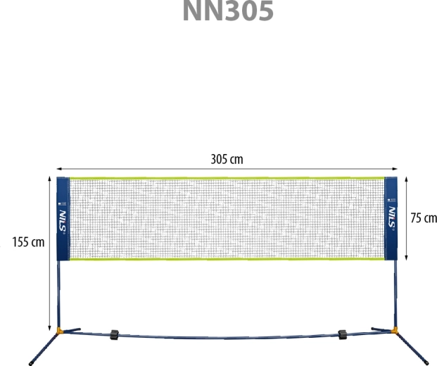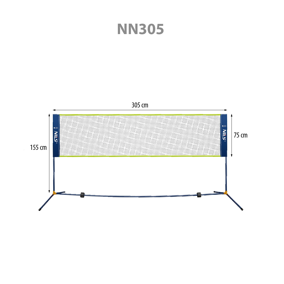 Síť NILS NN305 je navržená pro rekreační badminton a rychlou hru kdekoli. Ocelové trubky se spojem skrz centrální příčník zajišťují jistou stabilitu a pevnost konstrukce. Díky bočním napínacím šňůrám dosáhnete správného napnutí výpletu během chvilky, bez složitého nastavování.
