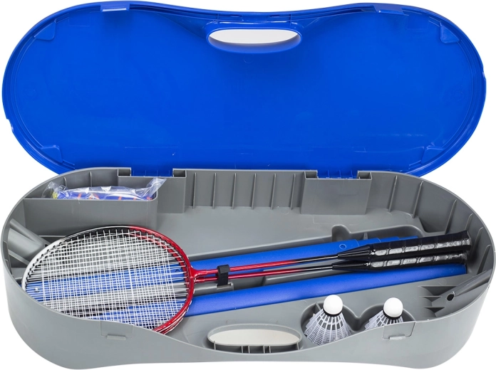Díky lehké konstrukci z polypropylenu a polykarbonových vláken je systém snadno přenosný, ale zároveň dostatečně pevný. Síť z PE s lemováním z tkaniny Oxford odolá opakovanému používání venku i uvnitř. V balení najdete také 2 badmintonové rakety a vše uložíte do kompaktního kufříku o rozměrech 71 × 30 × 13,5 cm.