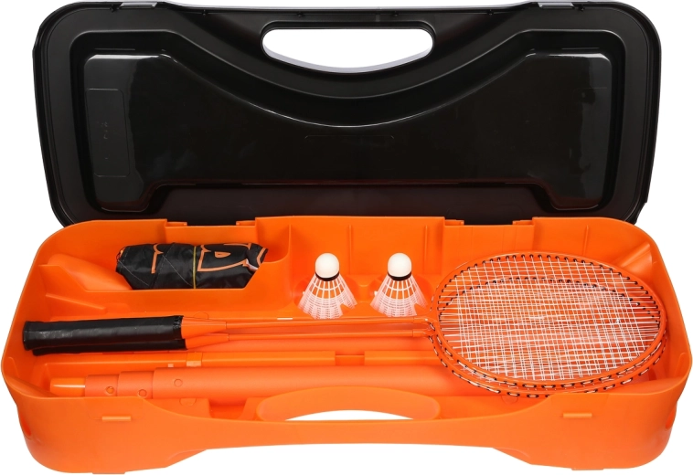 Set obsahuje vše potřebné pro okamžité hraní: dvě rakety, dvě letky, skládací síť a pevný transportní kufřík s organizovanými přihrádkami. Kompaktní balení (68 × 28,5 × 12 cm) se snadno vejde do auta i domácího úložiště, takže si můžete užít badminton na zahradě, v parku i na dovolené.