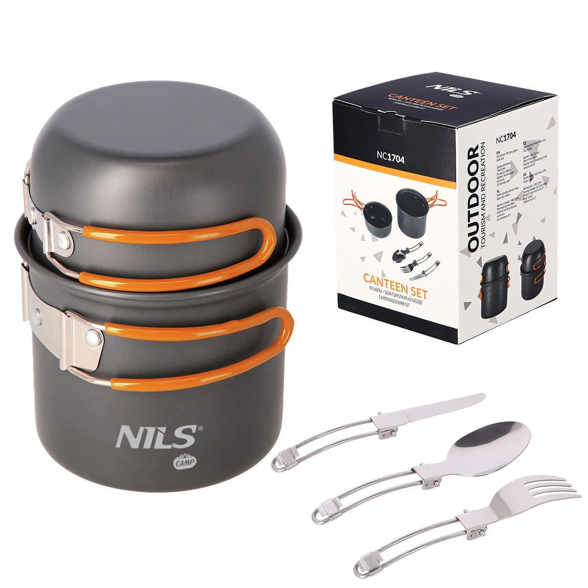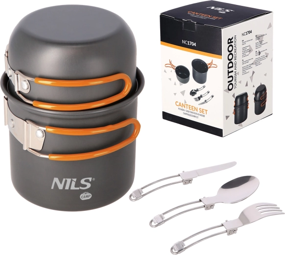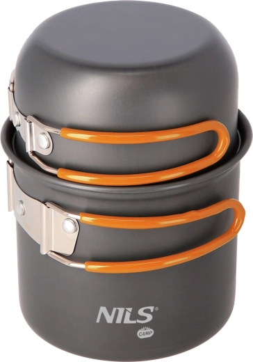 NILS Camp přináší praktickou sadu nádobí pro turistiku, kempování i vodácké výpravy. Hrnec a rendlík/pánvička z eloxovaného hliníku odolávají korozi i nepřízni počasí, sklopné nerezové rukojeti s gumovým potahem zvyšují bezpečnost úchopu. Díky stohovatelnému provedení a transportní síťce se sada snadno sbalí a nezabere téměř žádné místo.