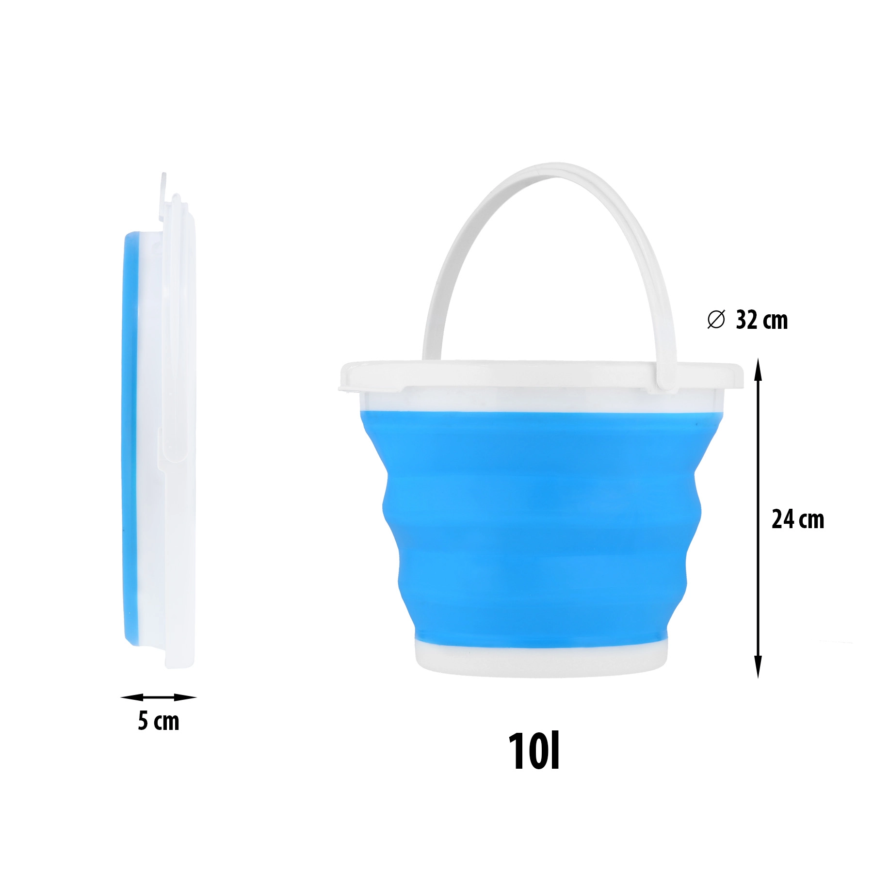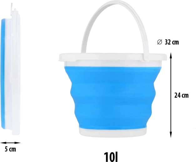 Kbelík je vyroben z odolných materiálů TP a PP, má pevné madlo pro pohodlné nošení a praktické očko na zavěšení. Snadno se čistí, dobře drží tvar a v batohu či kufru zabere minimum místa.