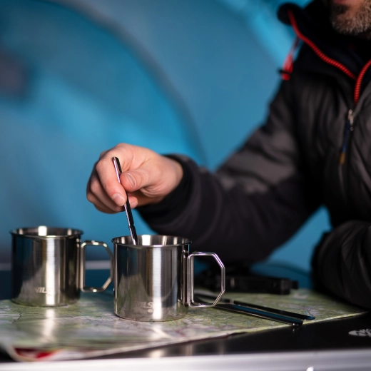Praktická skládací ucha šetří místo v batohu a zajišťují pohodlný úchop i při horkých nápojích. Každý hrnek váží jen 80 g, takže celá sada je mimořádně lehká a snadno sbalitelná, ideální pro pěší turistiku i delší treky.