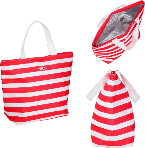 Díky prostornému hlavnímu oddílu pohodlně uložíte lahve, svačiny i boxy. Široké horní otevírání usnadní přístup k obsahu, zatímco nadčasový pruhovaný design v červené a bílé barvě dodá vašemu letnímu vybavení styl.