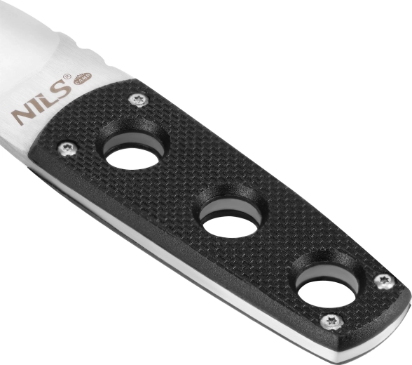 Ergonomická rukojeť s protiskluzovou texturou zajišťuje jistý úchop i za mokra či v rukavicích. Ochranné pouzdro s možností připnutí k opasku nebo batohu udrží nůž bezpečně po ruce při přesunu terénem.