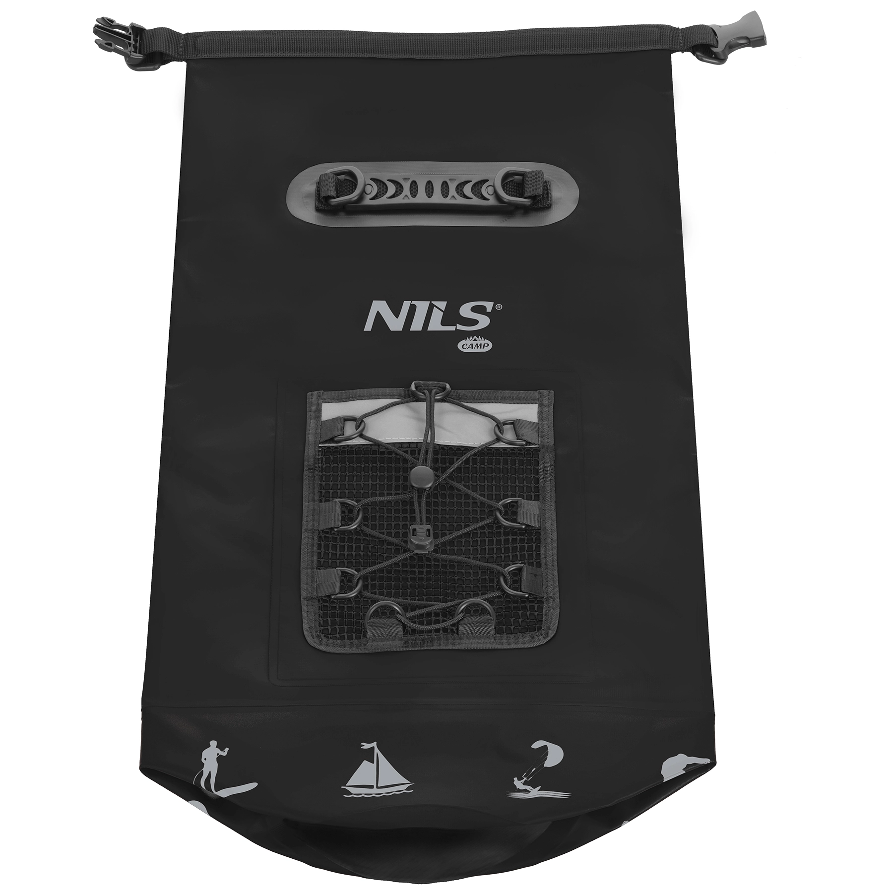 Vak nabídne odnímatelné a nastavitelné ramenní popruhy pro pohodlné nošení jako batoh nebo v ruce díky tvarované rukojeti. Na přední straně je síťovaná kapsa s bungee šňůrou pro láhev či drobnosti, které chcete mít ihned po ruce. Kompaktní válcová konstrukce usnadňuje balení do kajaku, kanoe i do kufru auta.