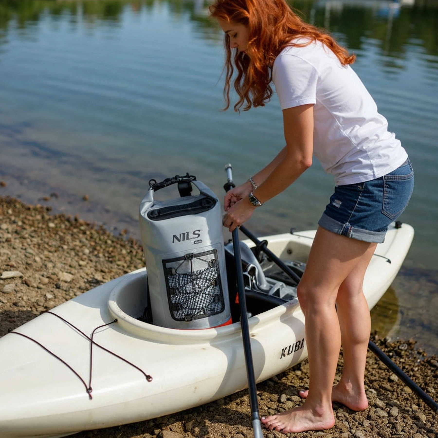 Odolný nepromokavý vak NILS Camp o objemu 25 l spolehlivě ochrání vaše věci před vodou, blátem i deštěm. Díky roll-top uzavírání s přezkou, vodotěsnému materiálu PVC 500D a síťované kapse pro rychlý přístup je ideální na kajak, paddleboarding, turistiku i kempování. Nastavitelné odnímatelné popruhy umožní pohodlné nošení jako batohu.