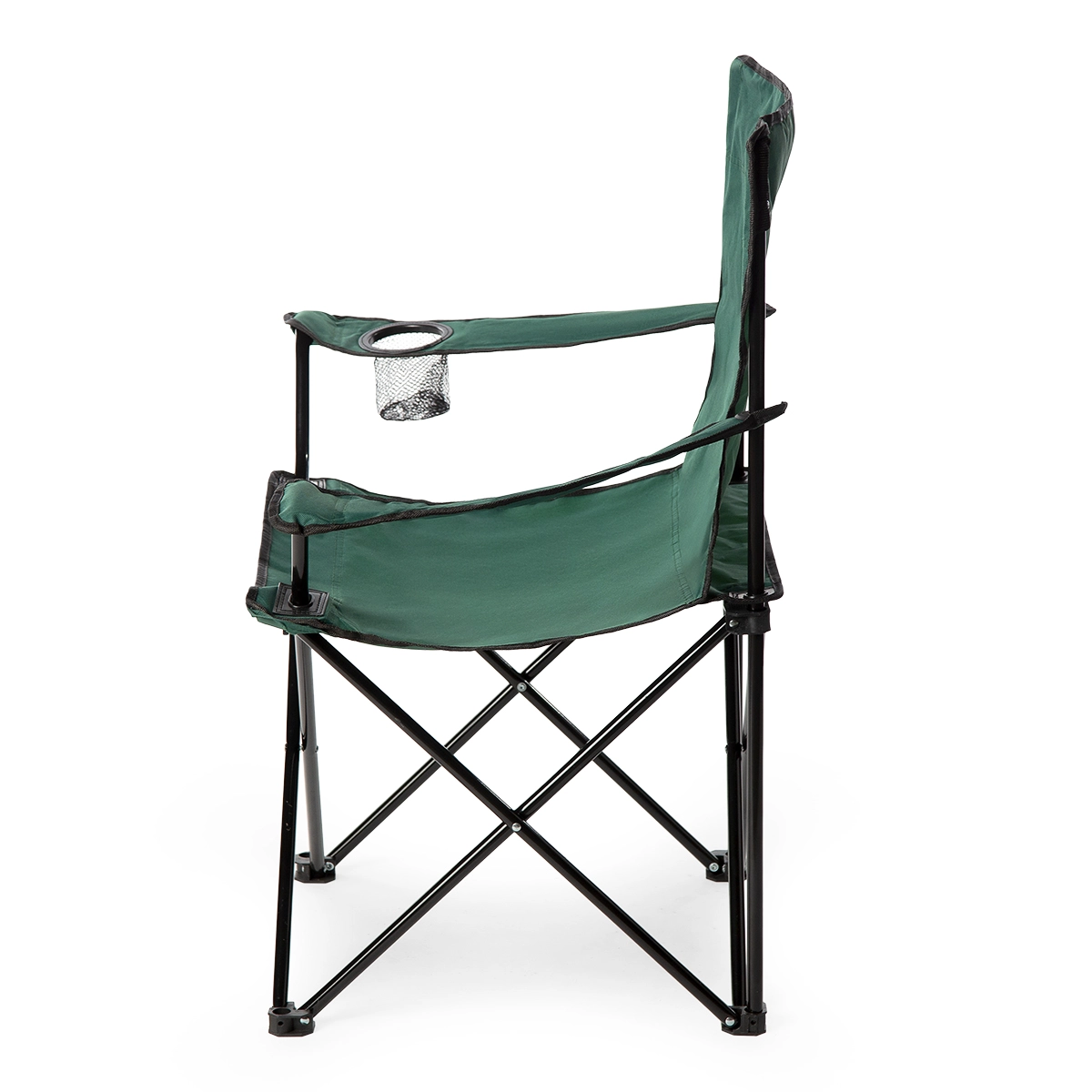 Pro větší komfort má židle nastavitelné loketní opěrky a integrovaný držák nápojů pro láhev či vysokou sklenici. Díky rychlému skládání a nízké hmotnosti je perfektní na cesty, pikniky i sportovní události.