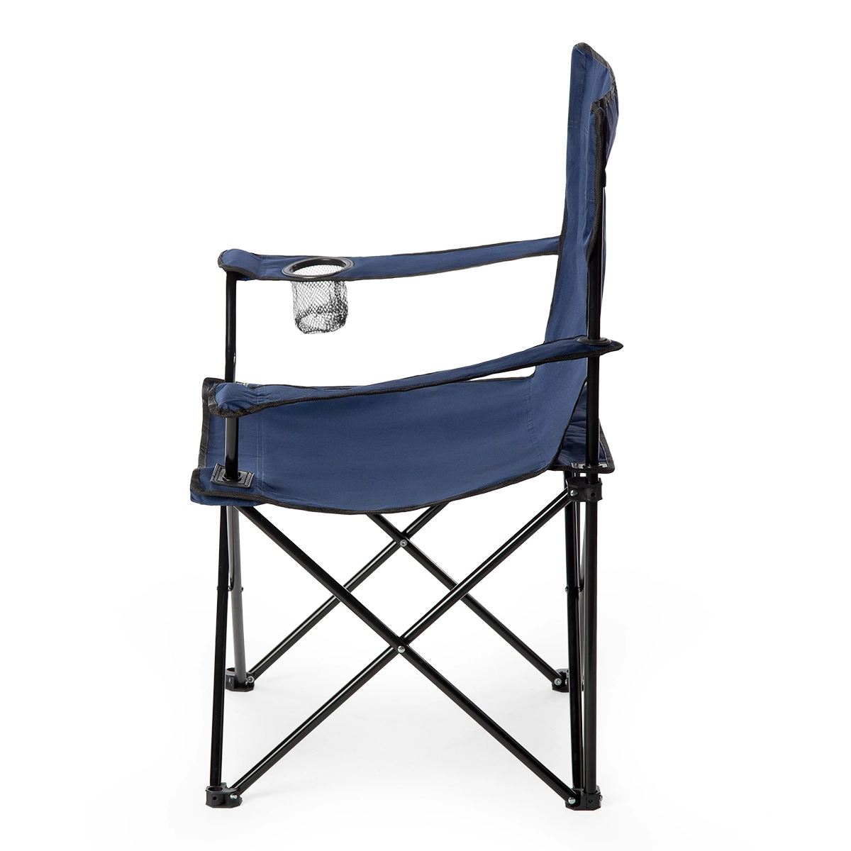 Promyšlené detaily zvyšují komfort při sezení: nastavitelné loketní opěrky si snadno přizpůsobíte a v integrovaném držáku nápoje bezpečně odložíte láhev či kelímek. Plastové nožičky se čtvercovou základnou zajišťují stabilitu a zabraňují boření do měkkého podloží. Po skončení dne ji během chvilky složíte do kompaktního tvaru pro snadný transport.