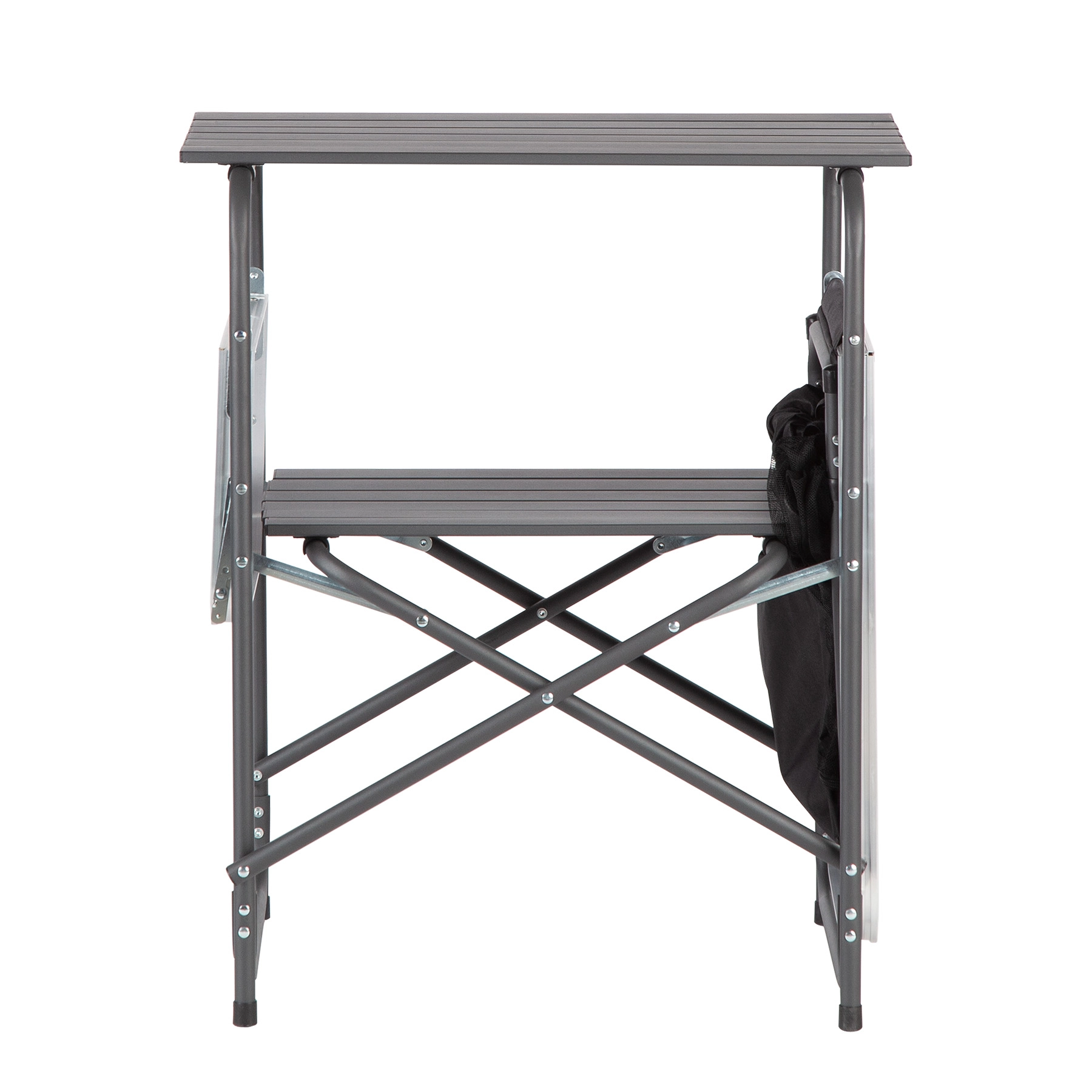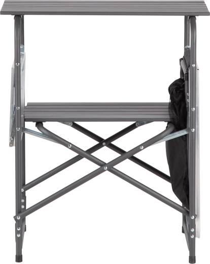Dvě sklopné pracovní desky poskytnou místo na přípravu i servírování jídel. Když potřebujete ušetřit prostor, jednoduše je sklopíte – skříň se tak výrazně zmenší a snadno ji uložíte do dodané tašky s uchem. Protiskluzové nožičky zajišťují stabilitu i na méně rovném povrchu.