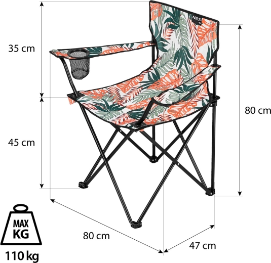 Tato skládací kempingová židle NILS Camp kombinuje pohodlí, odolnost a styl. Robustní rám z ocelových trubek o průměru 16 mm je spojen kvalitními nýty pro dlouhou životnost a vysokou stabilitu. Sedák a opěrka z polyesteru 600D odolávají oděru i povětrnostním vlivům, zatímco plastové výztuhy v namáhaných místech zvyšují celkovou pevnost.