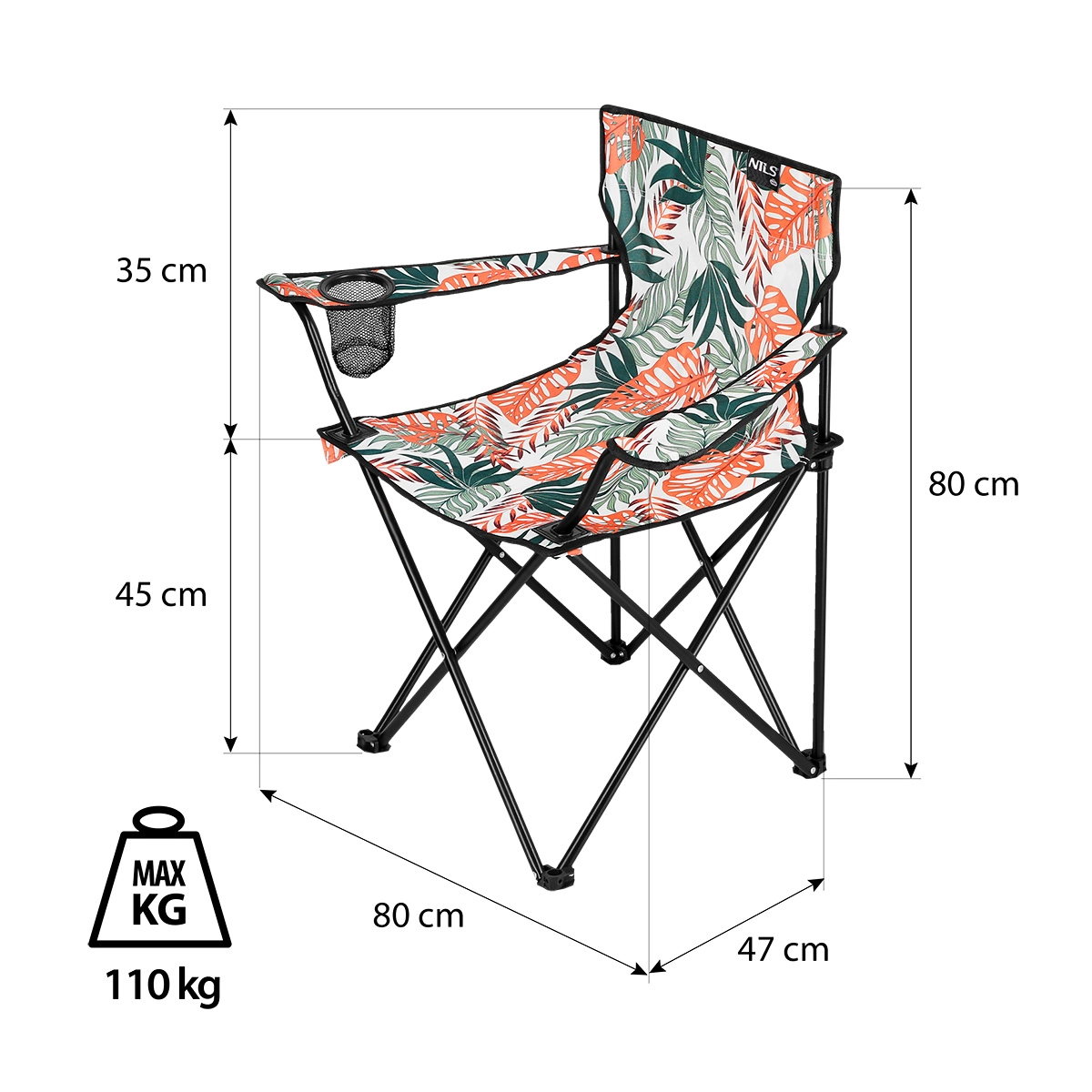 Lehká a stabilní skládací židle s tropickým potiskem je ideální k vodě, na ryby i na festival. Nabízí odolnou ocelovou konstrukci, pevnou tkaninu 600D, nastavitelné područky a praktický držák nápoje. Díky snadnému skládání a nízké hmotnosti ji pohodlně vezmete kamkoli.