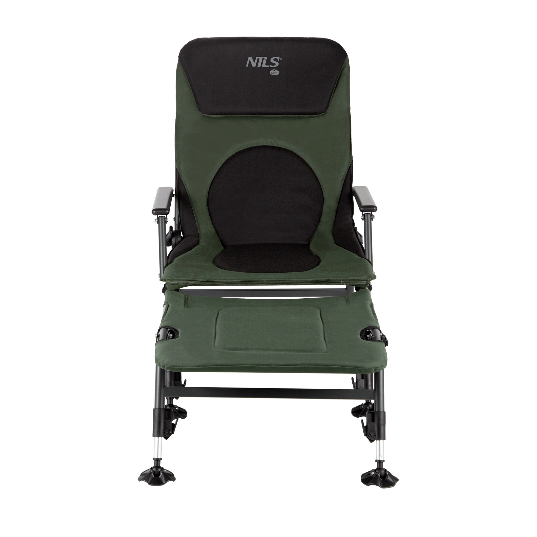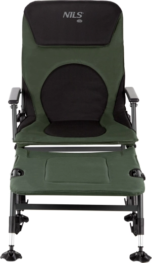 Užijte si maximální pohodlí u vody s rybářským křeslem s podnožkou NILS CAMP NC1802. Odolná konstrukce, polstrovaný potah 600D Oxford a plynulé polohování do relaxační pozice zajistí komfort v každém terénu. Díky nastavitelným nohám se širšími patkami je křeslo stabilní i na nerovném břehu a ocelový rám s nosností až 180 kg garantuje dlouhou životnost. Snadno se skládá a převáží, takže je ideální na ryby, kempování i odpočinek v přírodě.