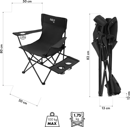 Užijte si pohodlné sezení na cestách, v kempu i na zahradě. Skládací židle NILS Camp je navržena pro všestranné outdoorové využití – od kempování přes rybaření až po festivaly. Potah z odolného polyesteru 600D s PE zátěrem odolá vlhkosti i běžnému opotřebení, zatímco stabilní ocelová konstrukce zajistí spolehlivé sezení do 100 kg.
