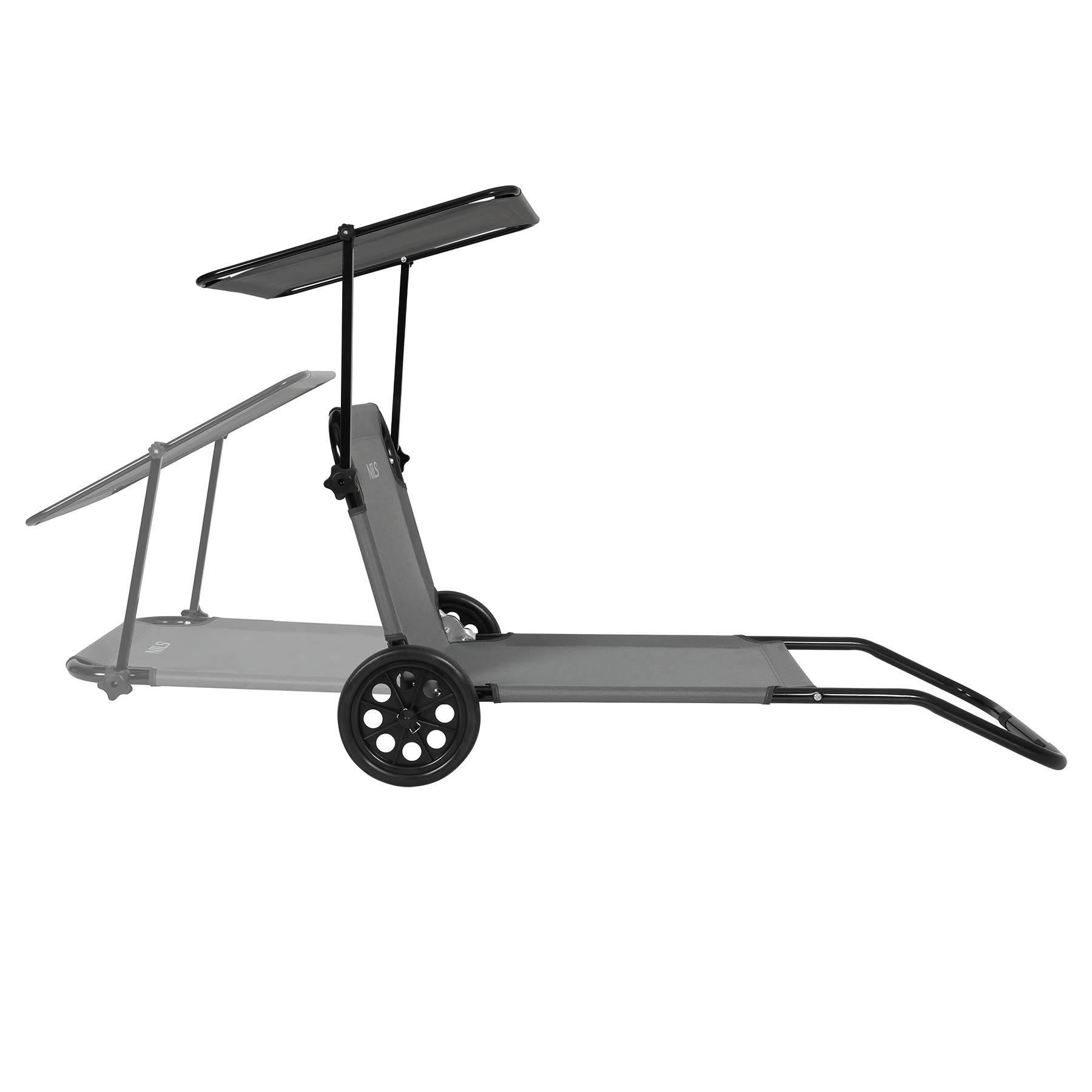 Dvě velká kola umožňují lehátko jednoduše táhnout jako kufr. Skvělé na pláž, do kempu i na zahradu – bez zvedání a bez demontáže.