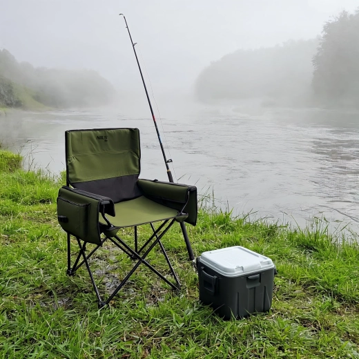 Praktické detaily oceníte na každém kroku: dvě boční kapsy pro drobnosti a nápoje, transportní obal pro snadné přenášení a potisk se stupnicí o délce 15" na zadní straně opěradla. Díky skládací konstrukci zabírá minimum místa a s hmotností kolem 4,4 kg ji snadno vezmete kamkoli.