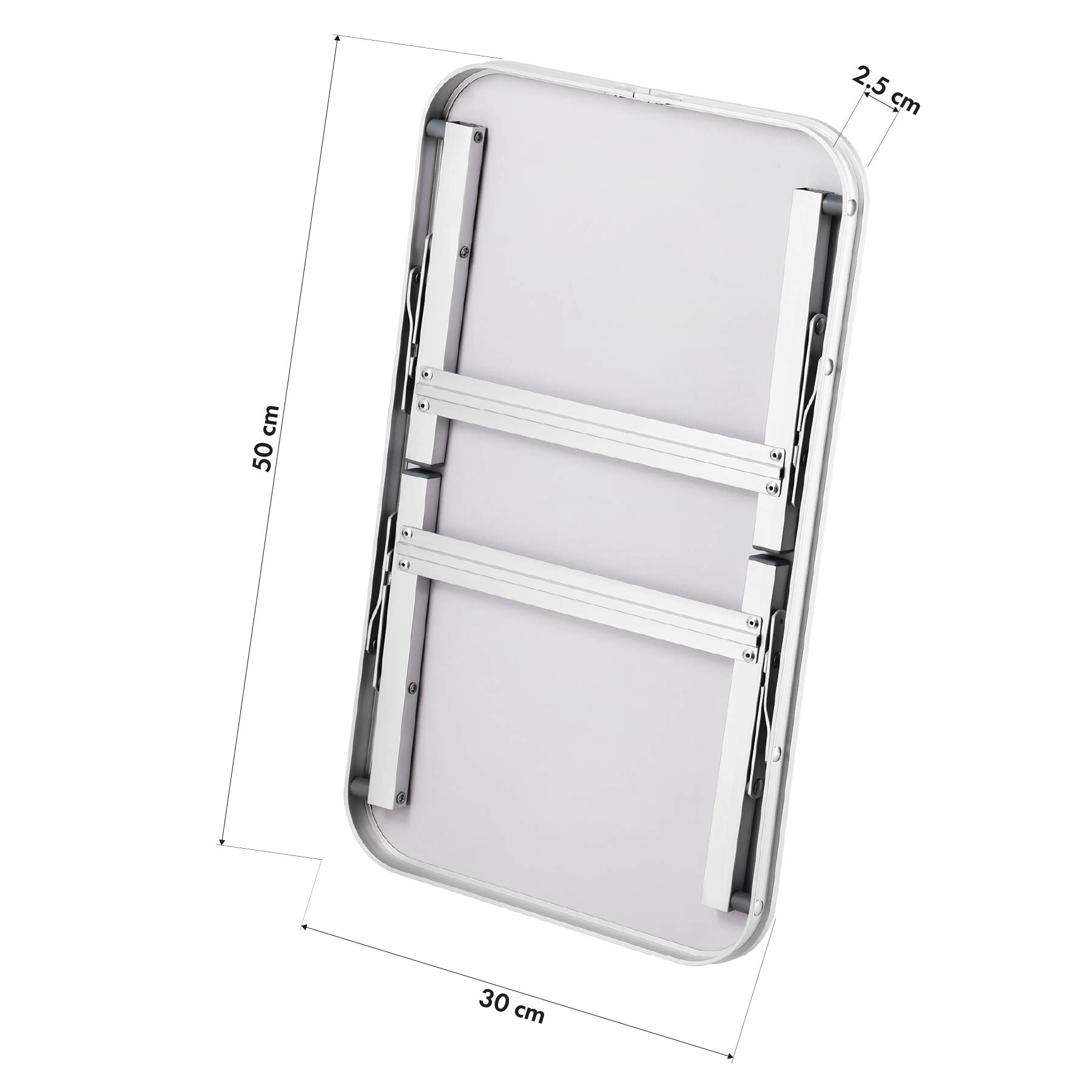 Po složení má stolek výšku jen 2,5 cm, takže se bez potíží vejde do auta, batohu či příručního zavazadla.