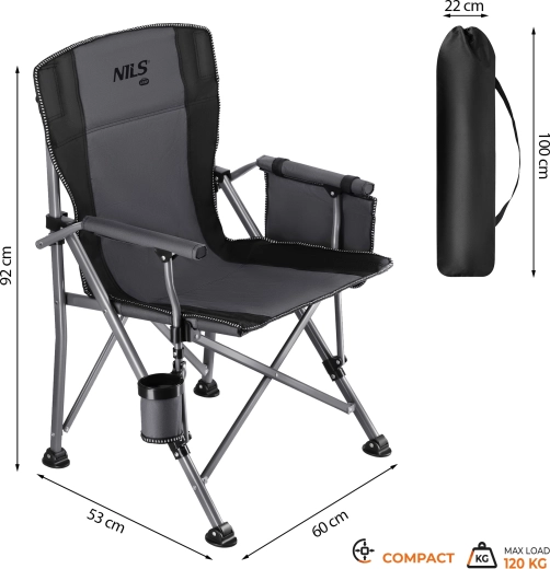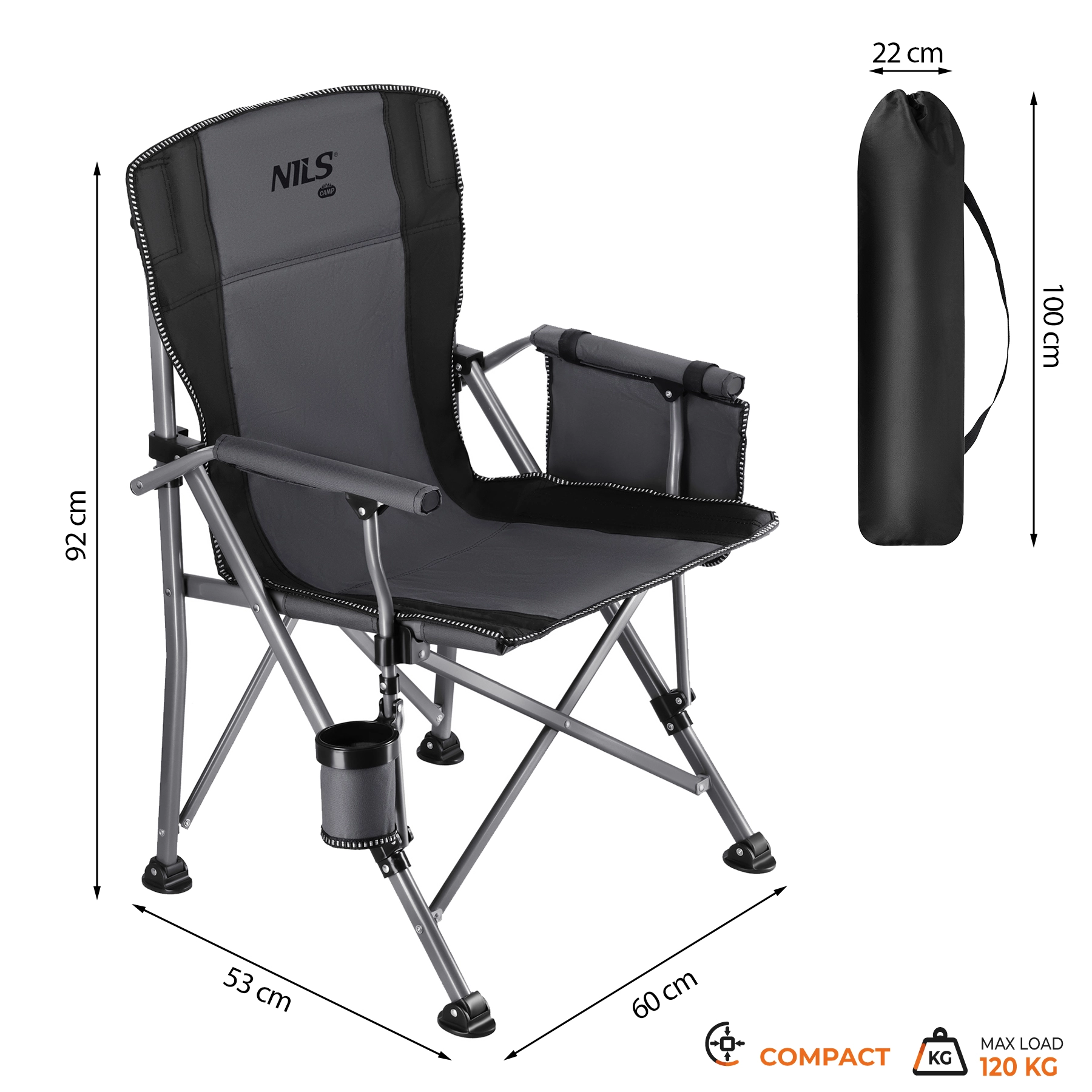 Užijte si pohodlí kdekoliv v přírodě. Skládací kempingové křeslo NILS Camp kombinuje pevný polyester 600D Oxford se zátěrem a stabilní ocelovou konstrukci s práškovým lakem pro dlouhou životnost. Díky nízké hmotnosti a kompaktním rozměrům po složení ho snadno přenesete k vodě, na kemp i na zahradu.