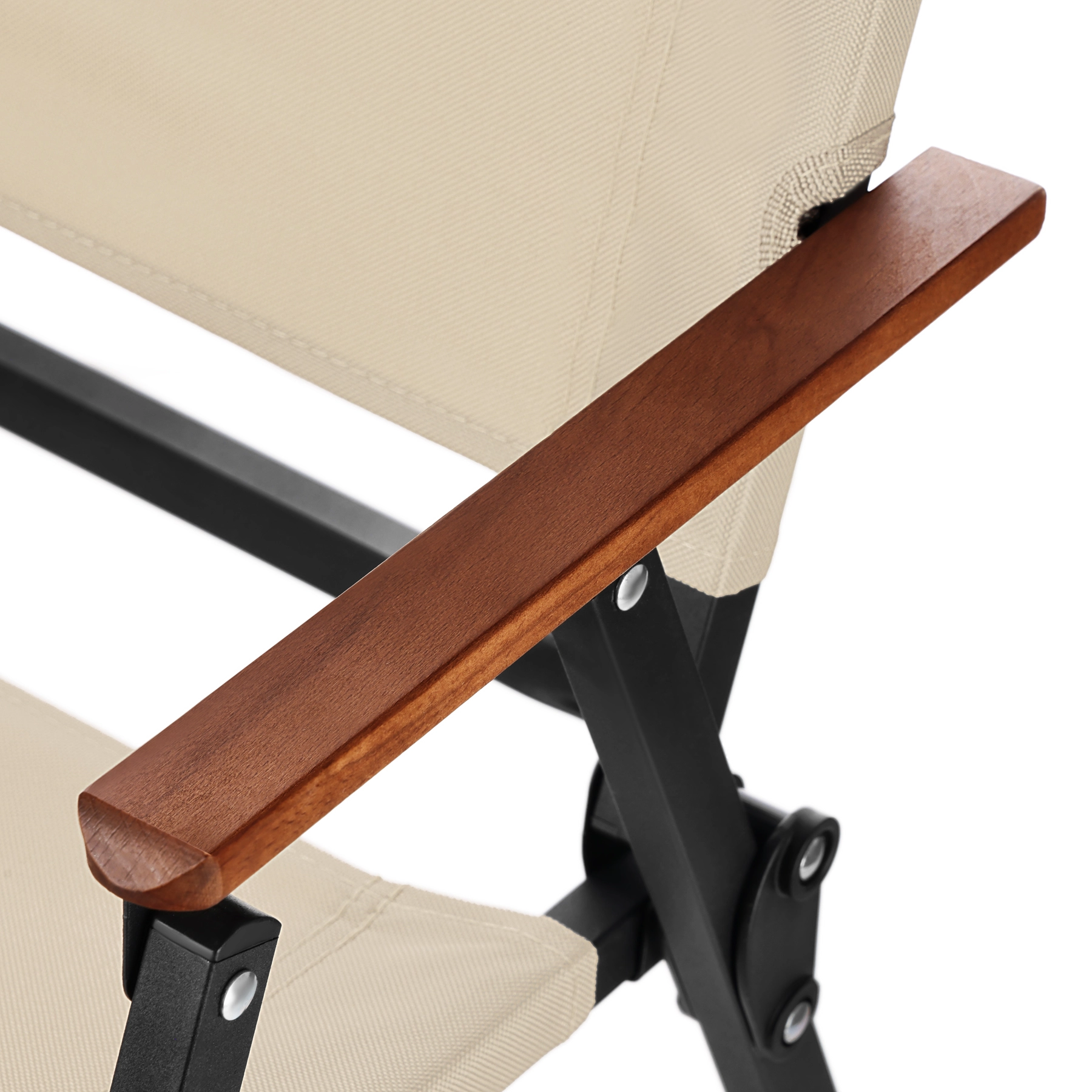 Dřevěné područky dodávají křeslu elegantní vzhled a příjemný kontakt při odpočinku doma i venku.