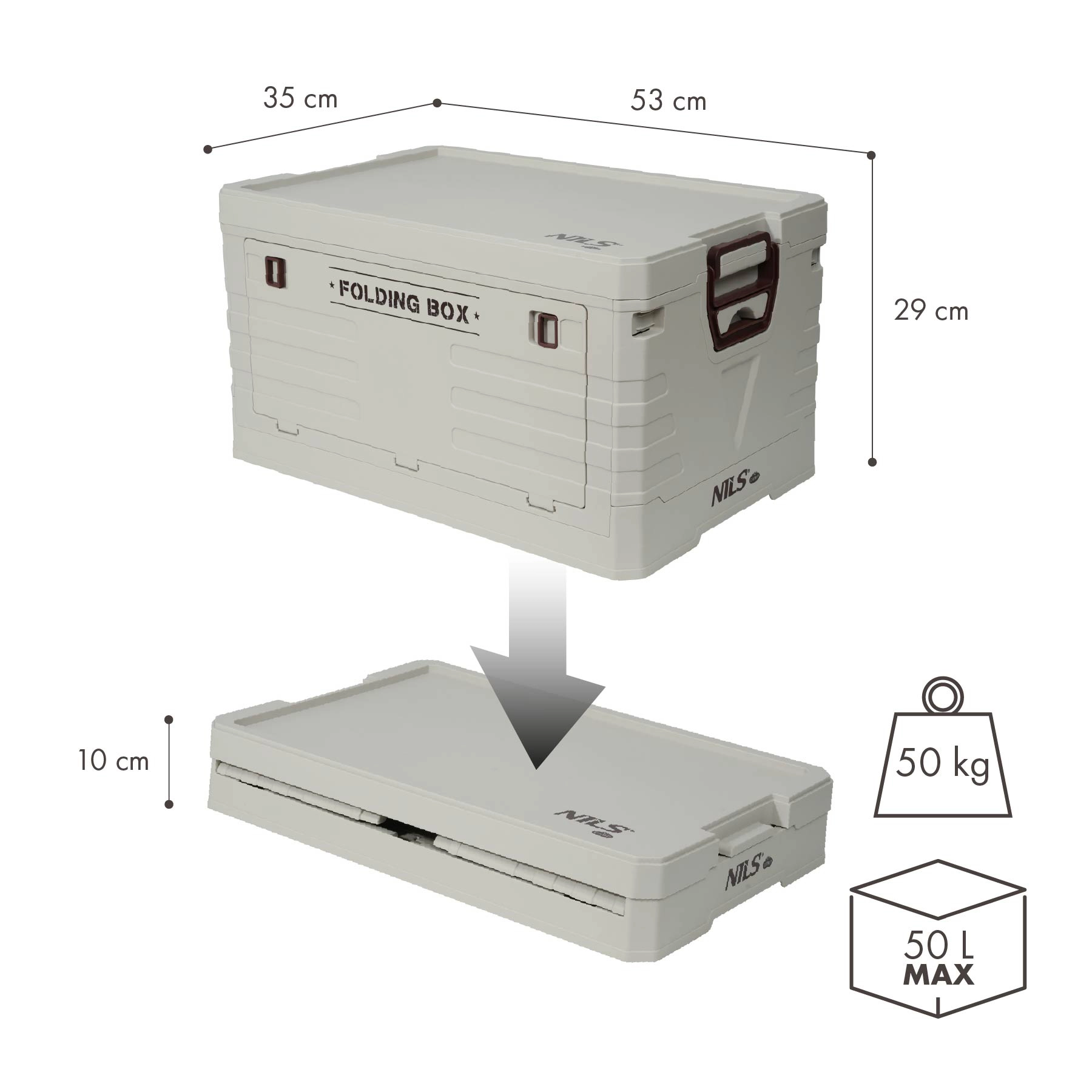 Skládací úložný box s víkem NILS Camp je ideální pro auto, kempování, dílnu i domácnost. Nabízí velký objem 50 l, odolné provedení z PP a rychlé složení na výšku jen 10 cm pro úsporu místa. Díky zacvakávacímu víku a bočním madlům je obsah v bezpečí a manipulace je snadná.
