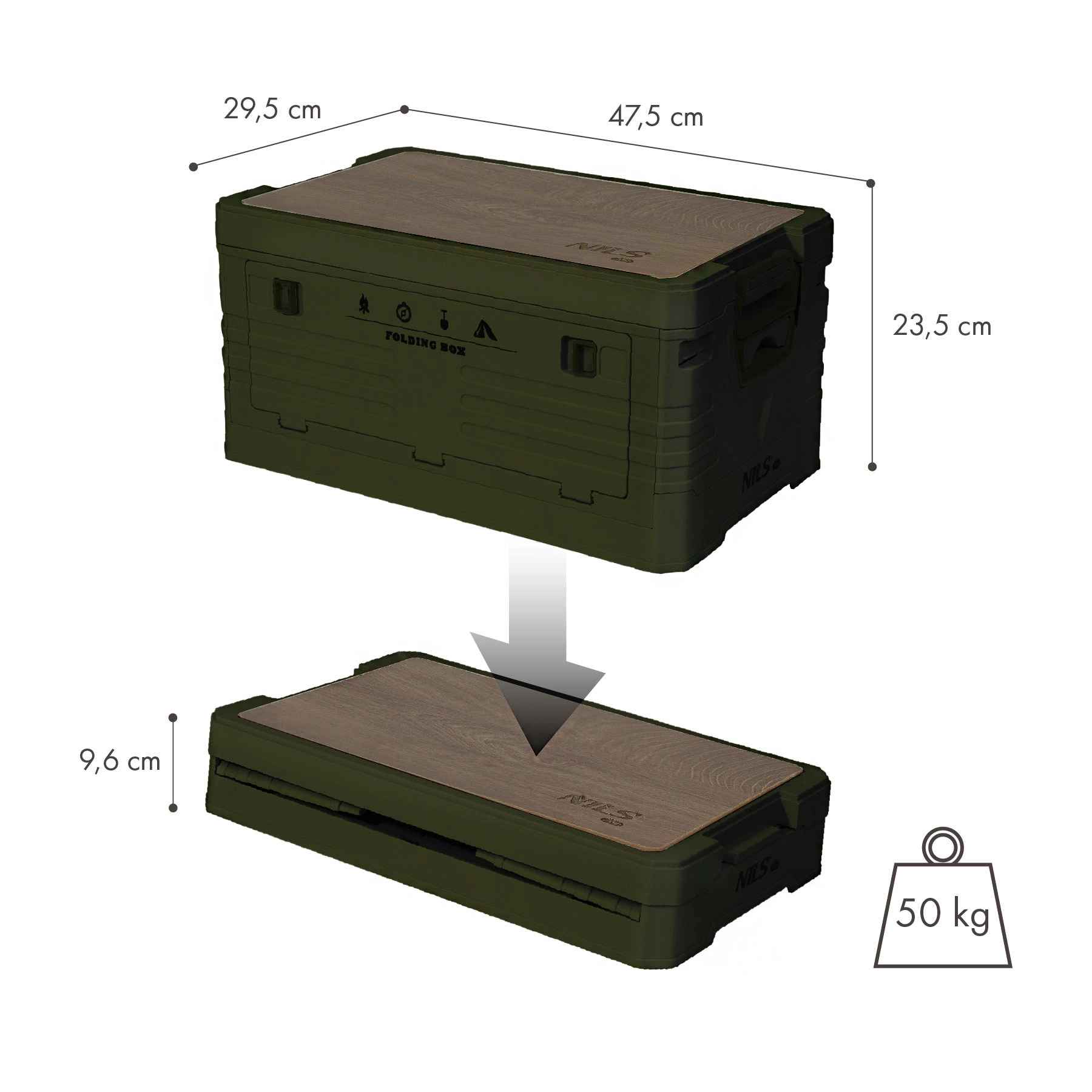 Univerzální úložný box NILS Camp je skvělou volbou pro kempování, cestování i každodenní organizaci. Odnímatelná dřevěná deska promění box v stabilní stolek nebo pracovní desku, zatímco skládací konstrukce ušetří místo při přepravě i skladování. Pevné stěny z odolného polypropylenu zvládnou i těžší obsah a ochrání vaše vybavení.
