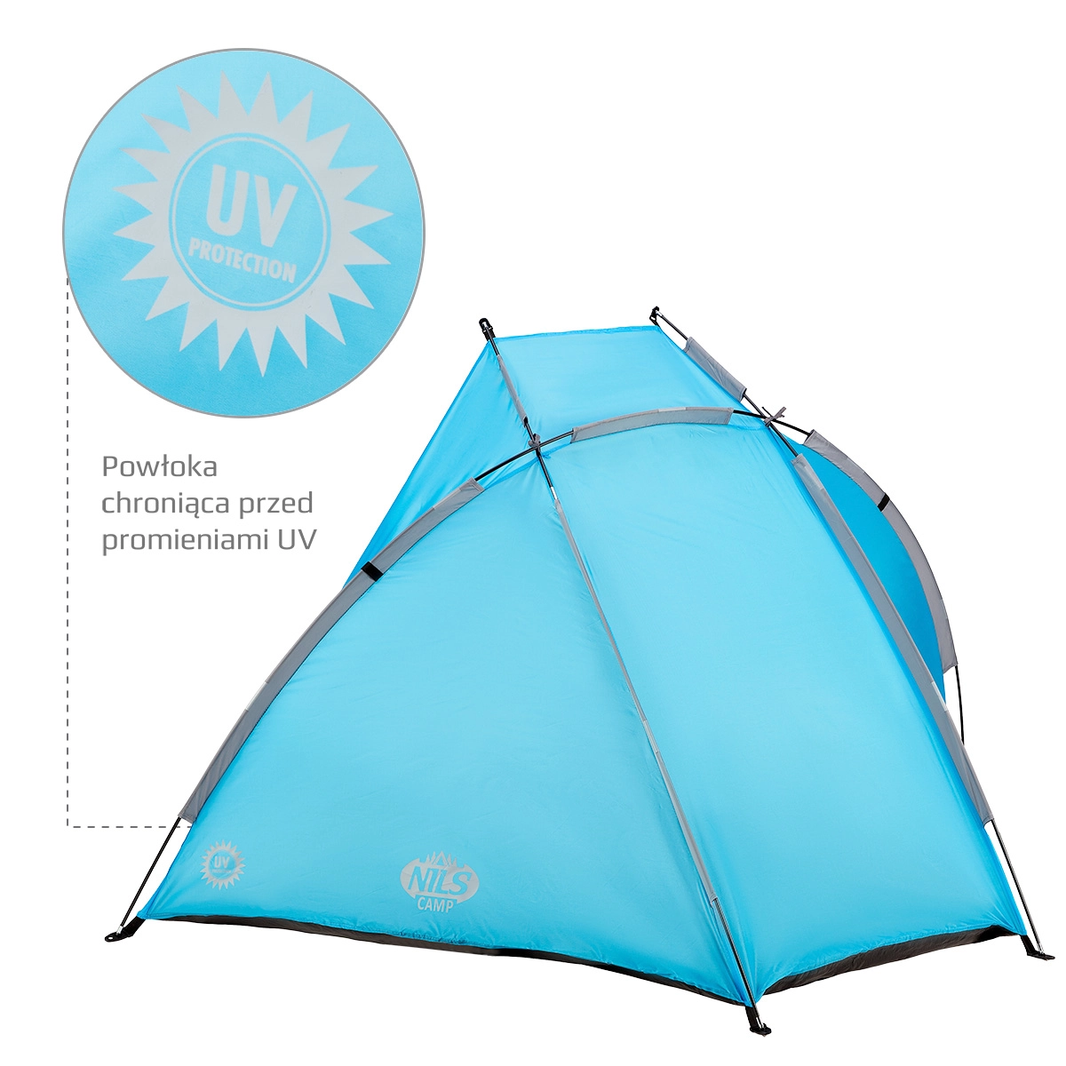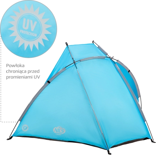 Lehký a skladný plážový stan NILS Camp poskytuje spolehlivý úkryt před sluncem pro děti i dospělé. Díky UV ochraně s odrazivostí až 96 %, jednoduché stavbě pomocí sklolaminátových tyčí a praktickým kapsám je ideální na pláž, koupaliště i zahradu. Nabízí rychlé sestavení, ochranu proti větru s kolíky v balení a materiál odolný i proti lehké dešťové přeháňce.