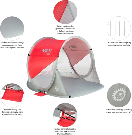 Samorozkládací plážový stan NILS Camp je skvělou volbou pro horké dny u vody. Díky automatickému systému se rozloží během pár vteřin a stejně snadno se složí zpět do kompaktní kruhové tašky s uchem. Poskytuje spolehlivou ochranu proti slunci s UV odrazivostí 96 % a vytváří stinné místo pro relaxaci.