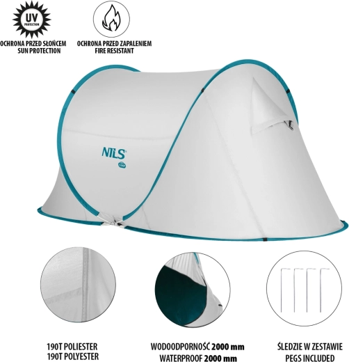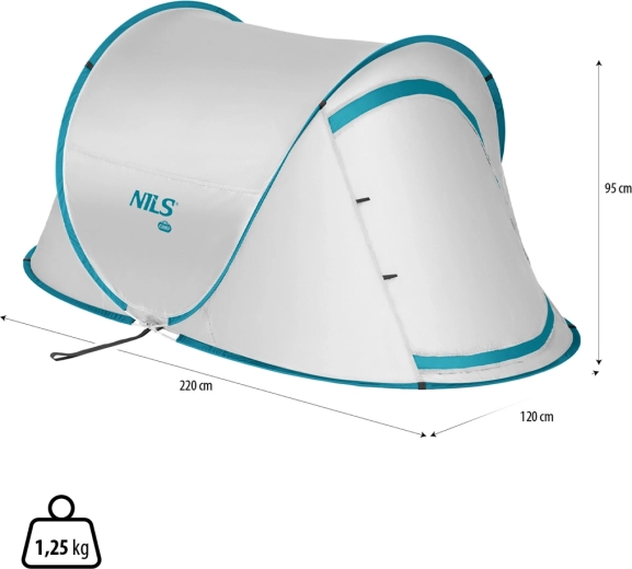 Stan NILS Camp je navržen pro rychlou a pohodlnou relaxaci u moře, jezera i na zahradě. Díky systému pop-up se rozloží z přepravní tašky během pár sekund, bez nářadí a složité manipulace. Moskytiéra a přední plachta na zip chrání před hmyzem i větrem, zatímco ventilační otvor zajišťuje čerstvý vzduch a příjemné klima vevnitř.
