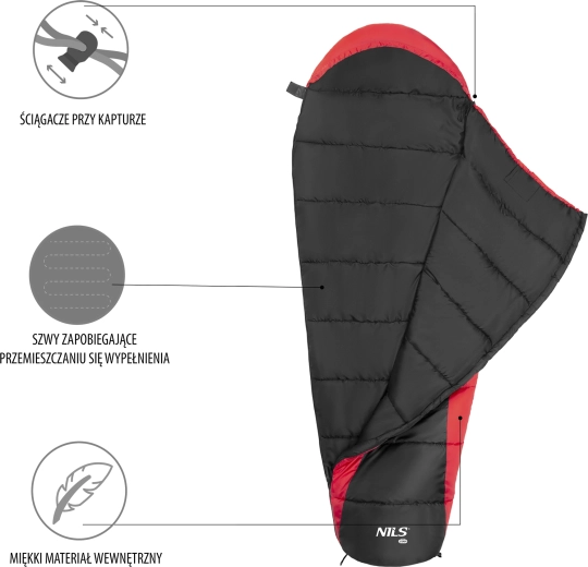 Lehký a teplý spací pytel typu mumie NILS Camp je ideální pro kempování a nocování v chladnějších podmínkách. Díky tvaru „mumie“ a kapuci se stahováním skvěle drží teplo, má kompresní obal pro úsporu místa, oboustranný zip s légou proti úniku tepla a kvalitní izolační výplň 300 g/m² pro příjemný spánek.