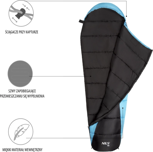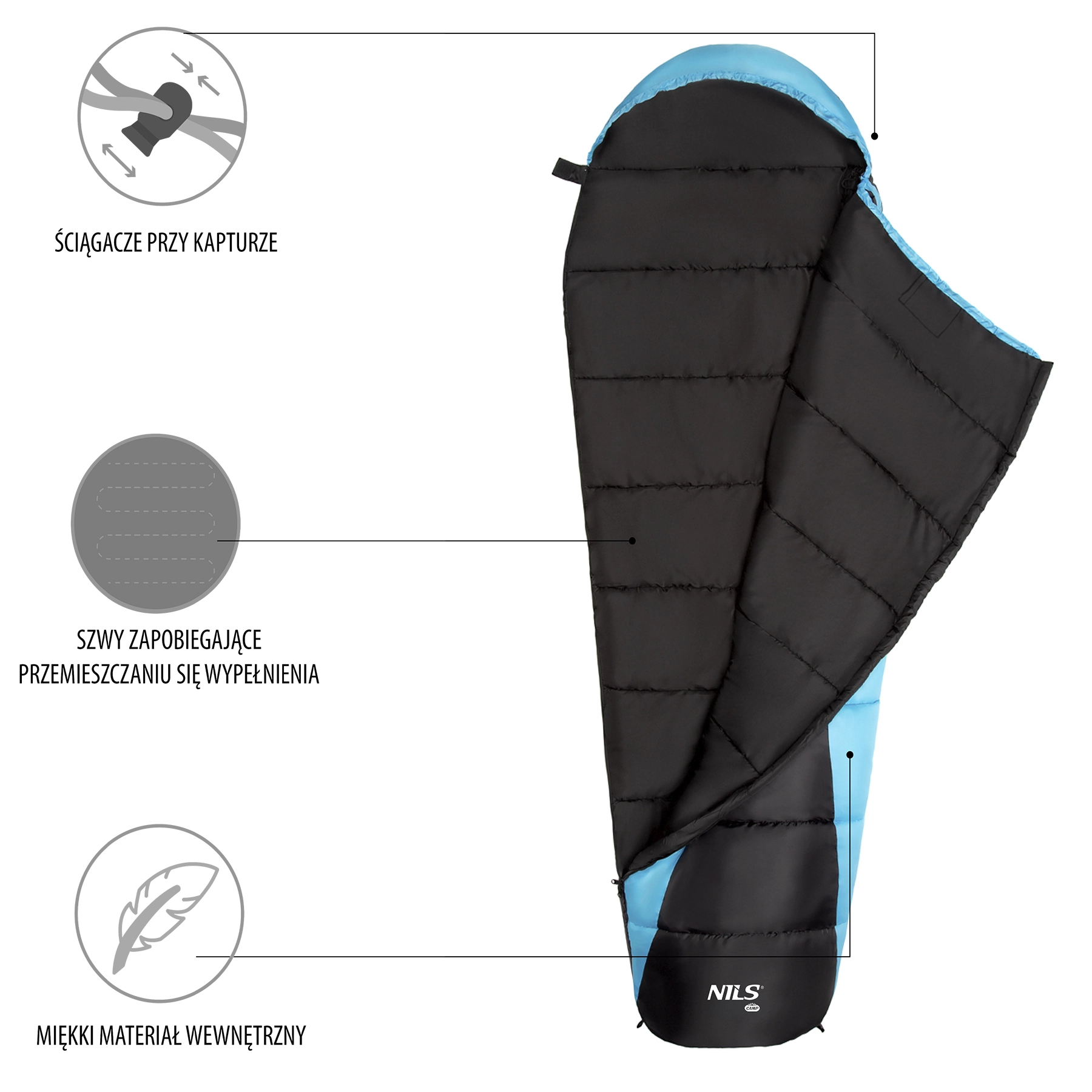 Spací pytel NILS Camp NC2012 je ideální volbou pro kempování, stanování i přespání pod širým nebem v přechodném období. Tvar „mumie“ účinně kopíruje tělo a snižuje objem prostoru, který je potřeba vyhřívat, což přináší lepší tepelný komfort a nižší hmotnost než u dekových spacáků.