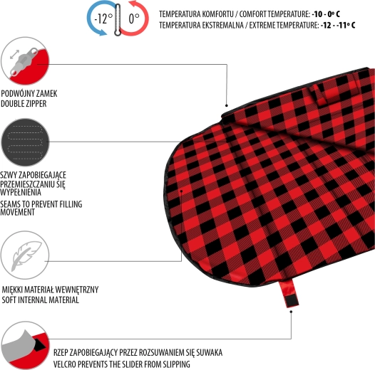 Součástí balení je kompresní obal s popruhy, který zmenší objem přibližně o třetinu pro snadnější přepravu. Komfortní teplota 0 °C a extrém -12 °C dělají z tohoto modelu spolehlivého parťáka do chladnějších podmínek.