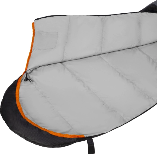 Dvojitá polyesterová výplň a mumie střih s kapucí efektivně drží teplo, přitom vnitřní mikrovlákno je příjemné na dotek.