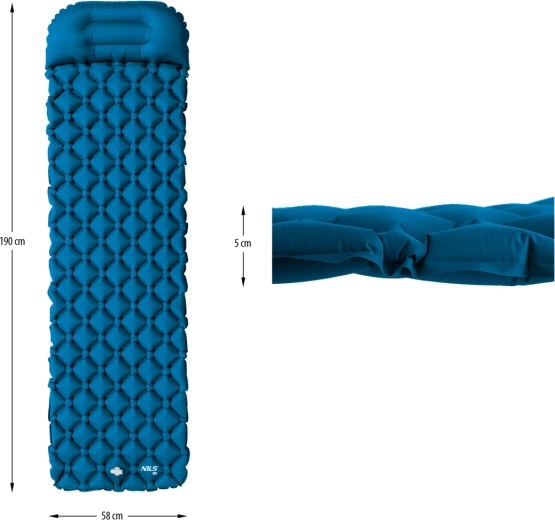 Lehká a odolná nafukovací karimatka NILS Camp s integrovaným polštářkem nabízí maximální pohodlí při kempování, na pláži i pod stanem. Díky velkému ventilu ji rychle nafouknete, materiál 40D nylon s TPU zátěrem zajišťuje vyšší odolnost proti oděru i vlhkosti a po sbalení je kompaktní a snadno přenosná.