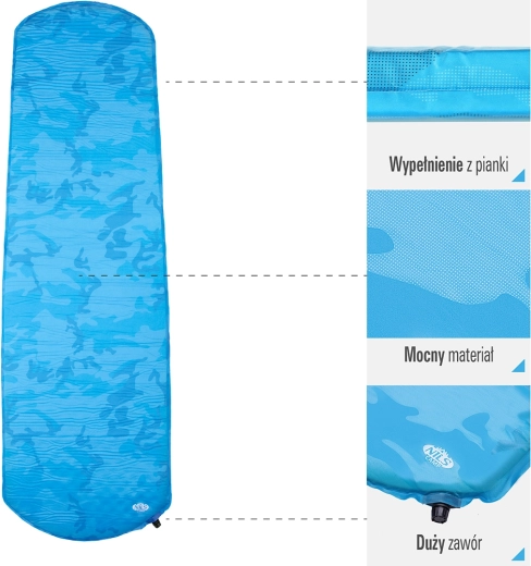 Užijte si kvalitní odpočinek kdekoliv na cestách. Samonafukovací karimatka NILS CAMP kombinuje pohodlí, jednoduché použití a odolné materiály. O samonafouknutí se stará pěnové jádro s otevřenými póry – po povolení ventilu nasaje vzduch a vrátí se do původního tvaru. Pro maximální komfort ji stačí krátce dofouknout.